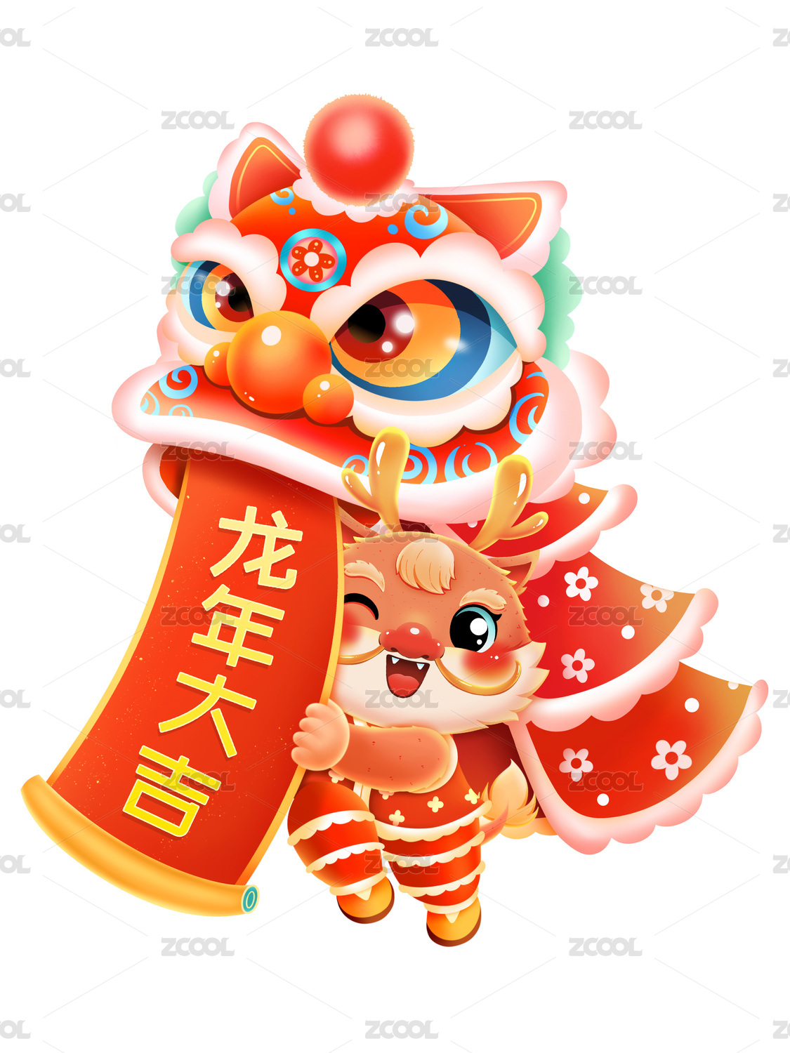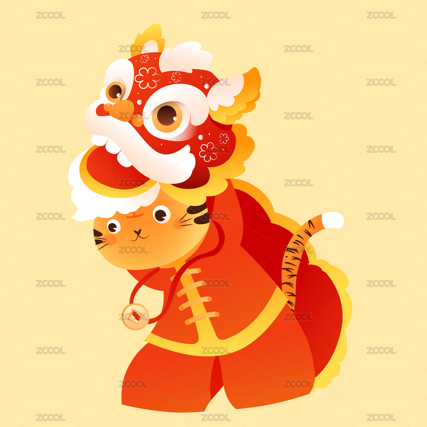 国潮新年春节舞狮醒狮桔兔兔年大吉