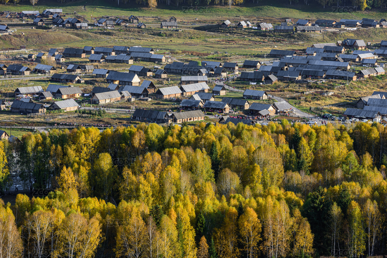 中国新疆阿勒泰布尔津喀纳斯禾木村秋天风光