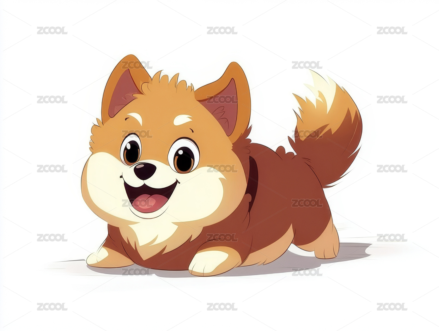 一只摇着尾巴快乐的狗卡通剪贴画风格