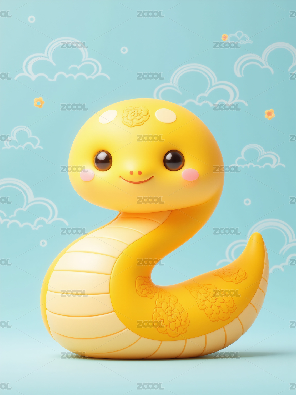 可爱卡通蛇年动物形象的吉祥物3D插画