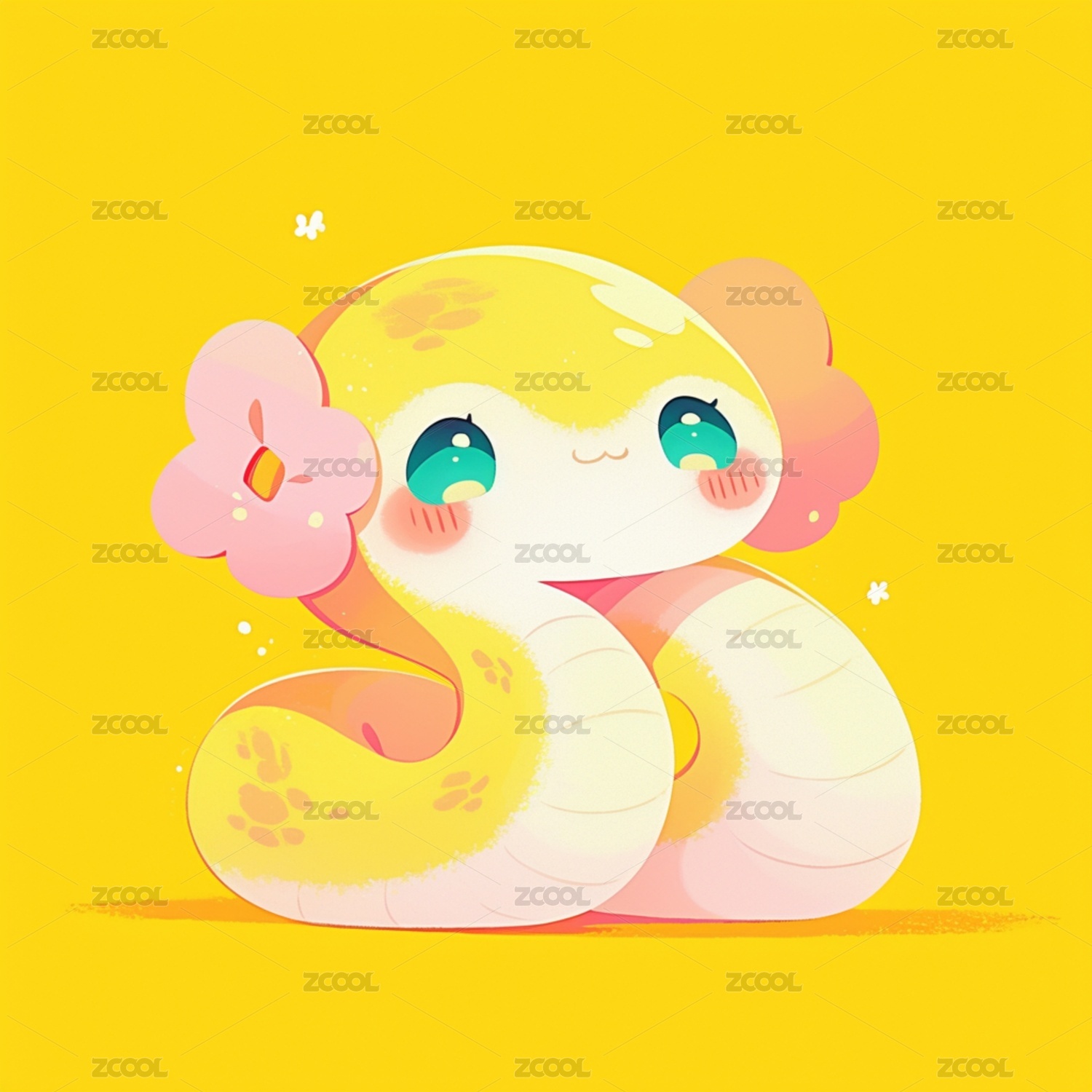 蛇,蛇年,可爱,卡通,插画,3D,黄色,背景,春节,生肖