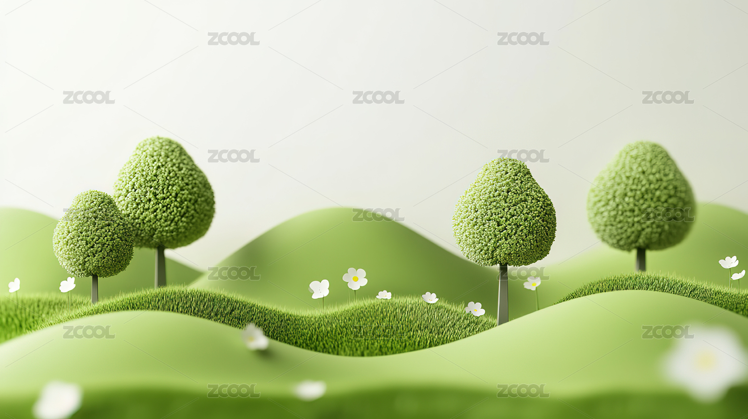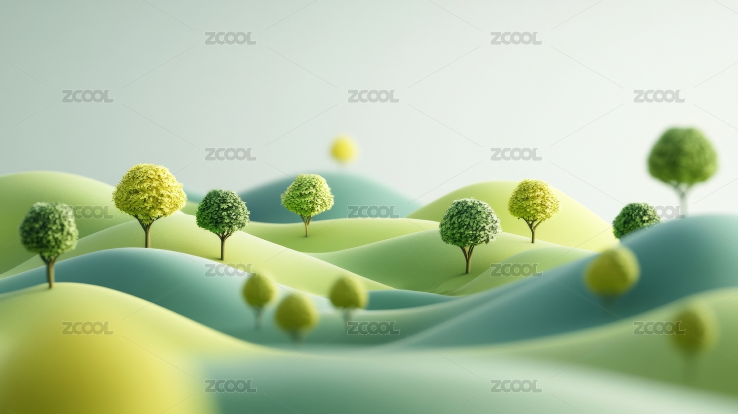 3D绿色山丘自然概念场景