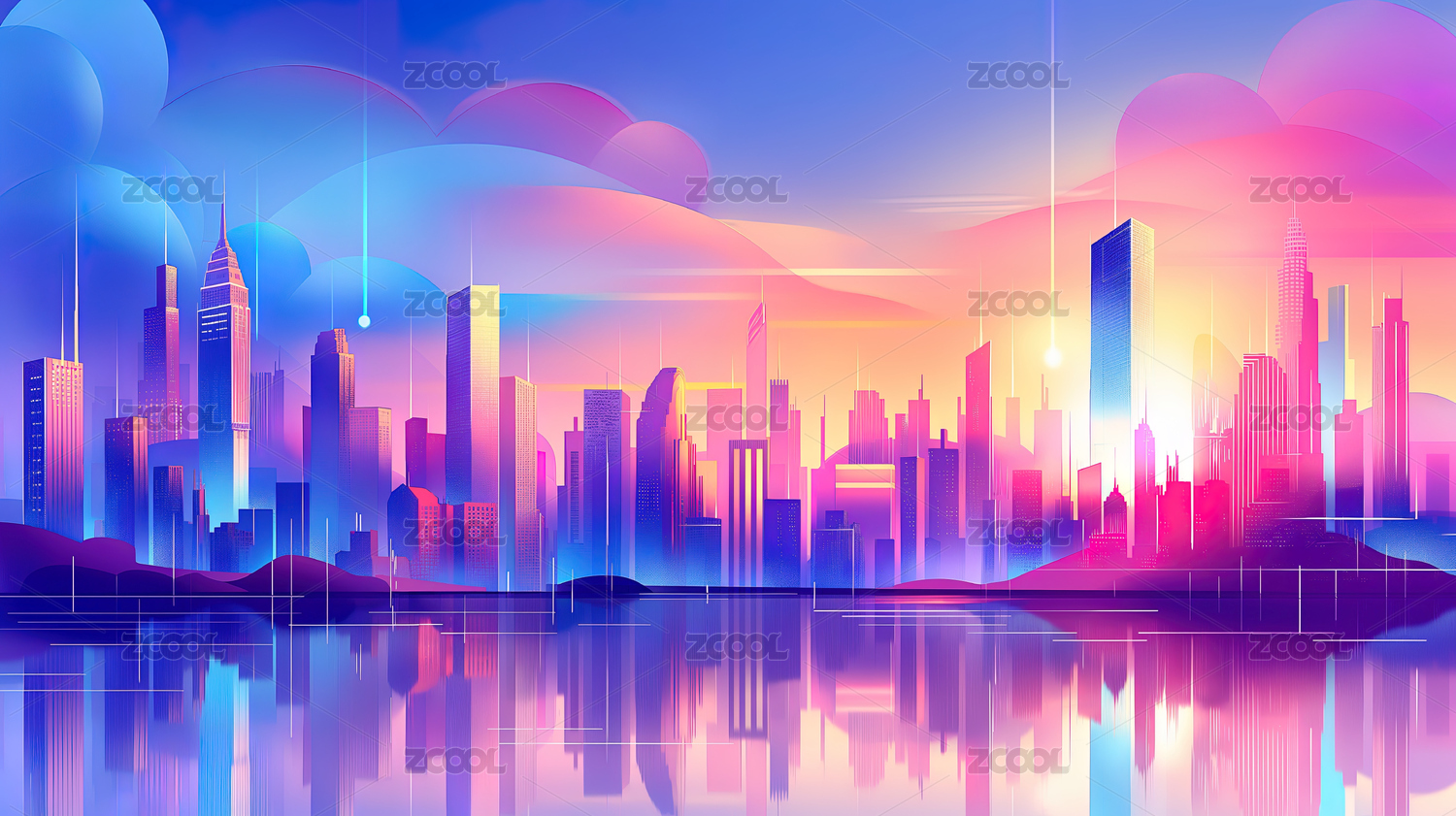 城市,抽象,粒子,著名景点,发光,弯曲,科学技术,建筑外部,城市天际线,喷泉