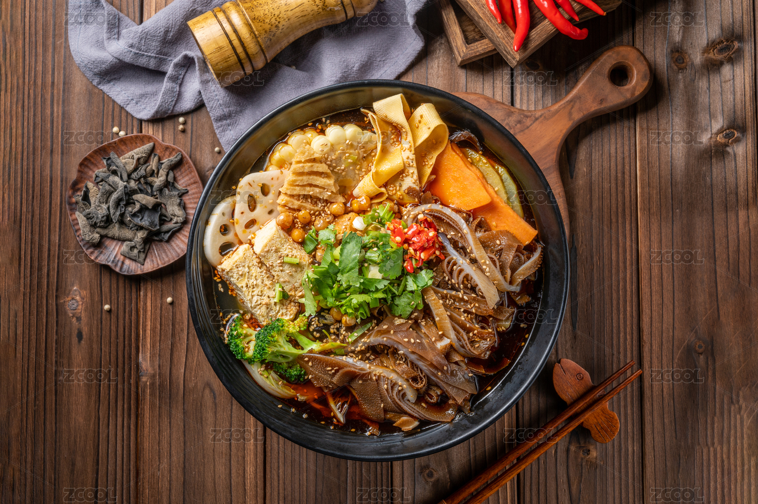 冒菜,毛肚,冻豆腐,藕片,干豆腐,玉米,鱼豆腐,麻辣,美食,传统