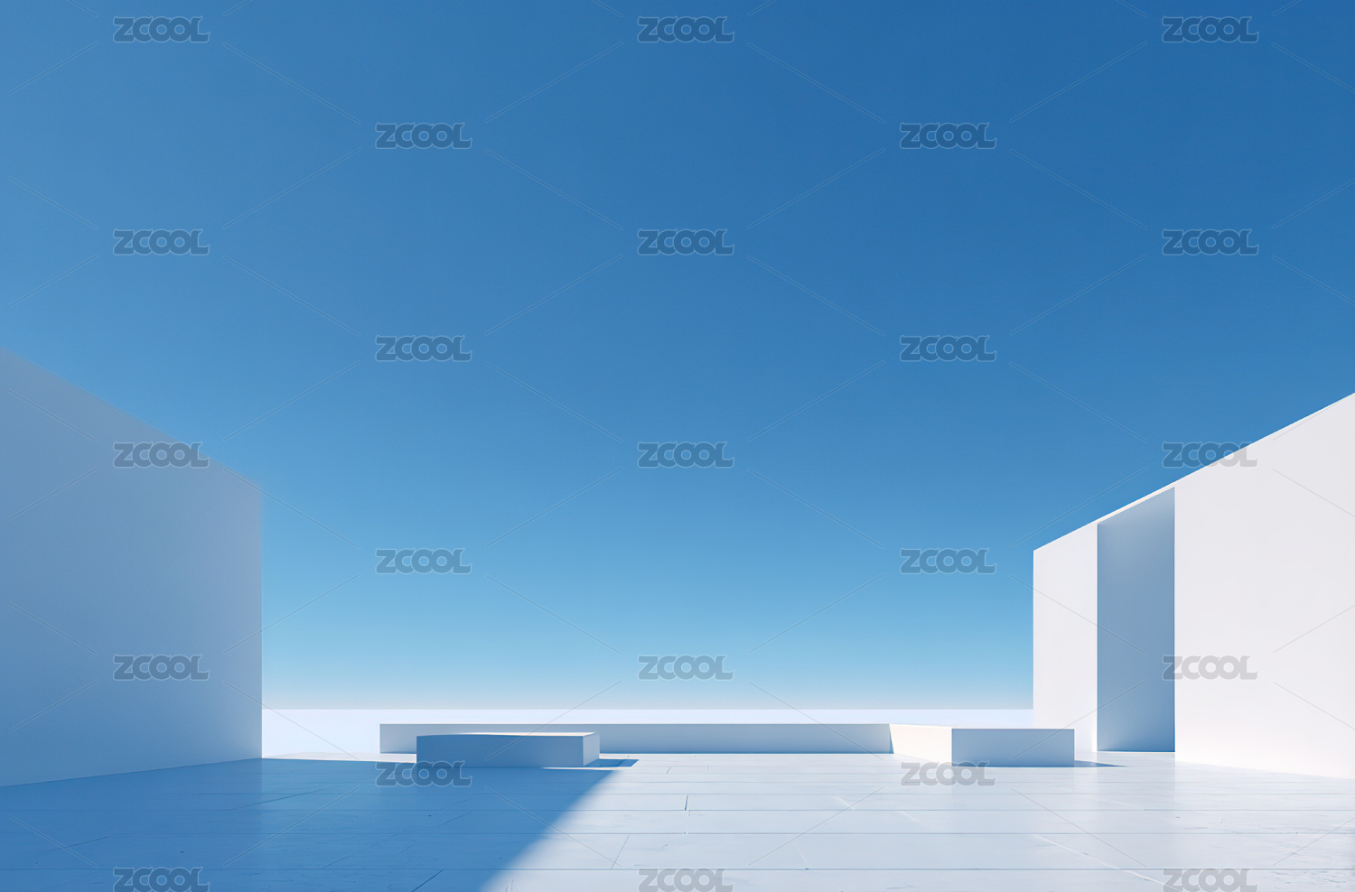 白色空旷的室外建筑场景3D渲染