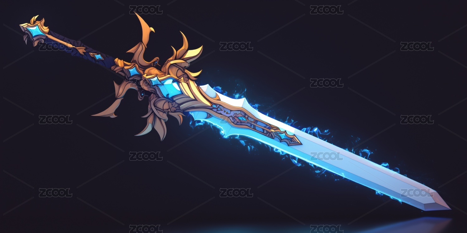 黑背景游戏装备武器荧光色宝剑3D立体插画