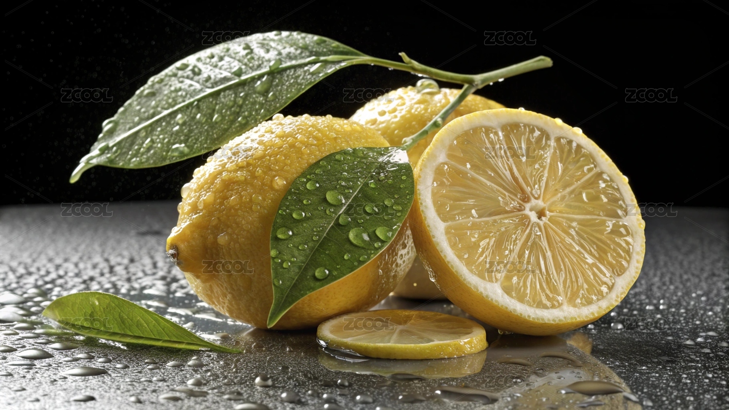 柠檬,水果,水花,飞溅,叶子,叶,液体,碰撞,迸发,新鲜