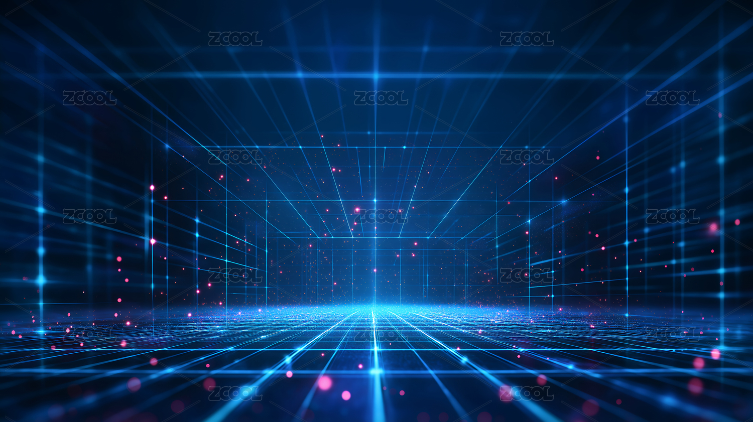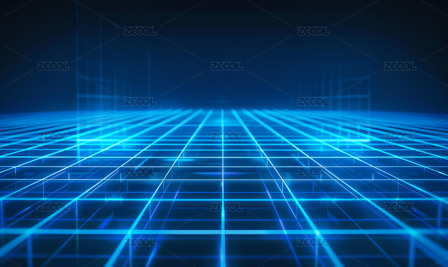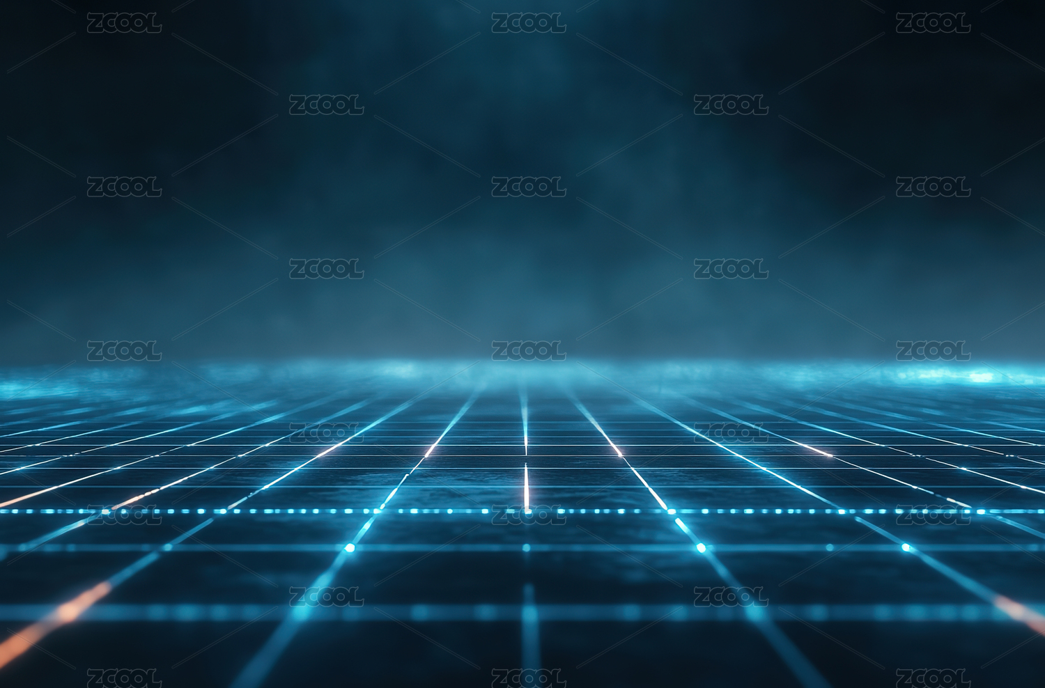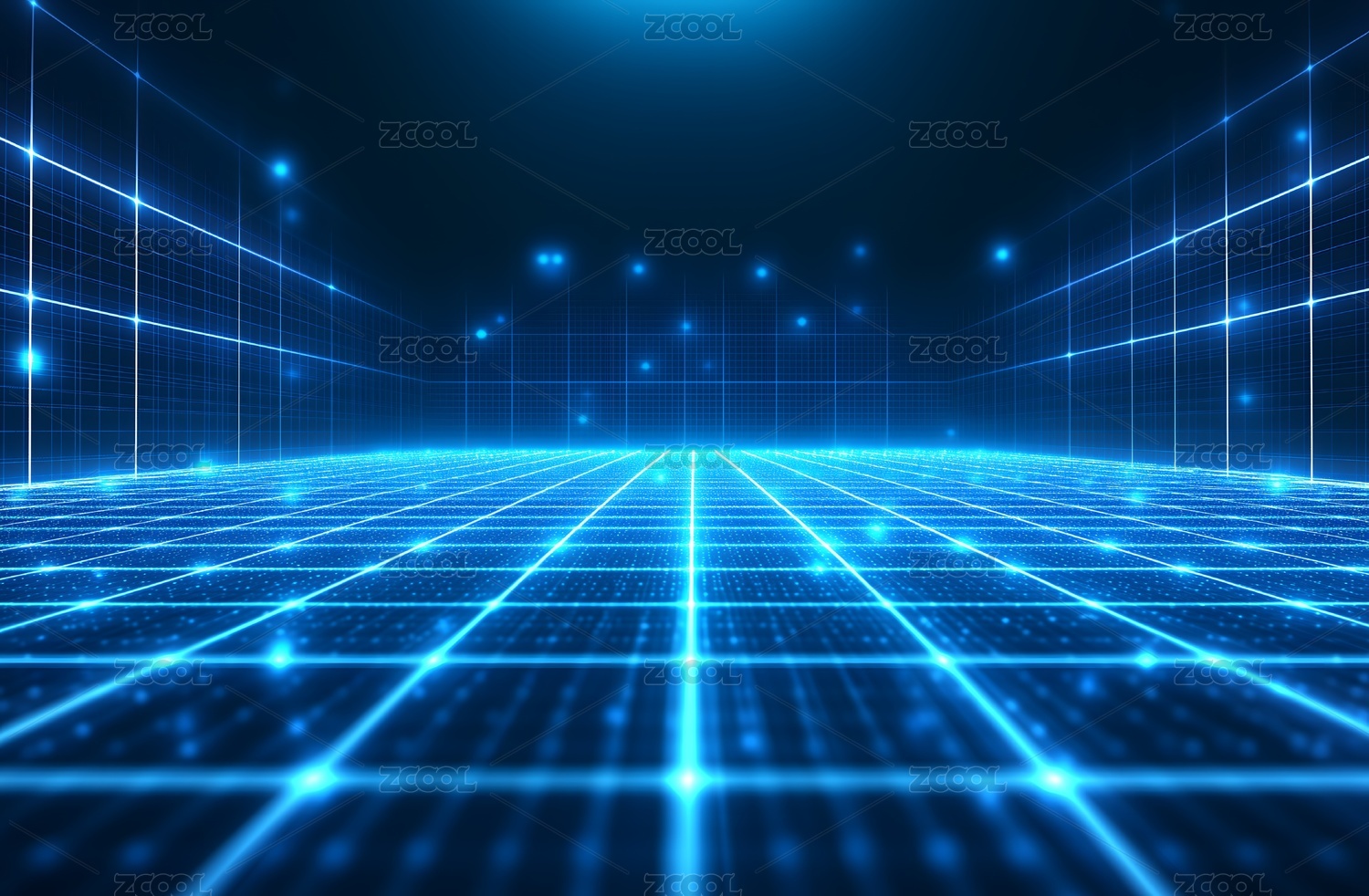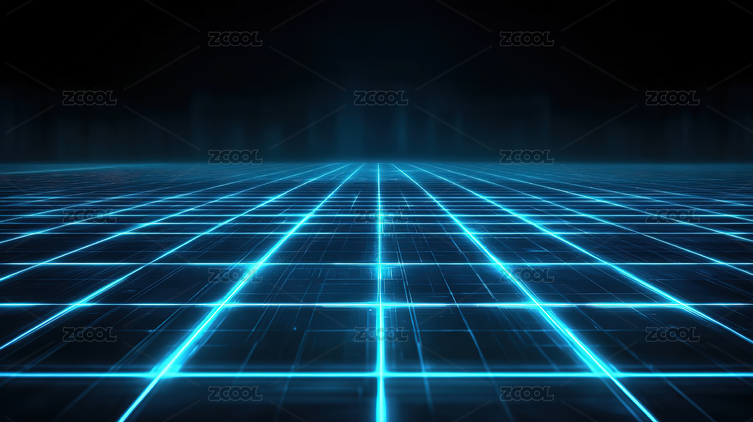 未来,光效,科技,黑色,蓝色,网格,发光,透视,概念,抽象