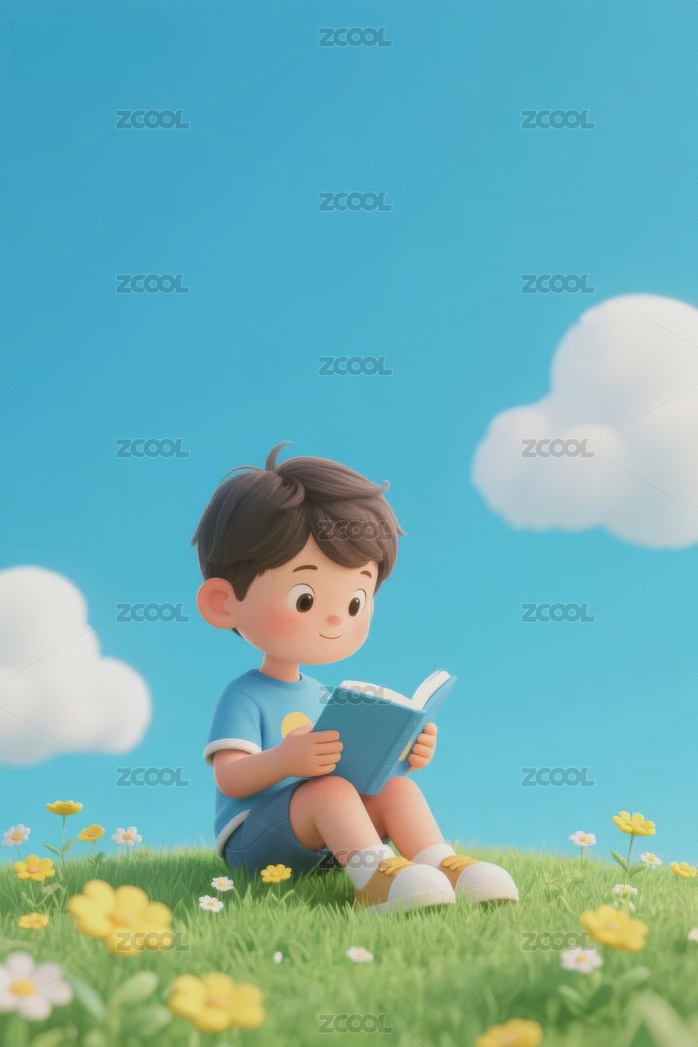 六一儿童节可爱大眼睛大笑的小男孩3D卡通