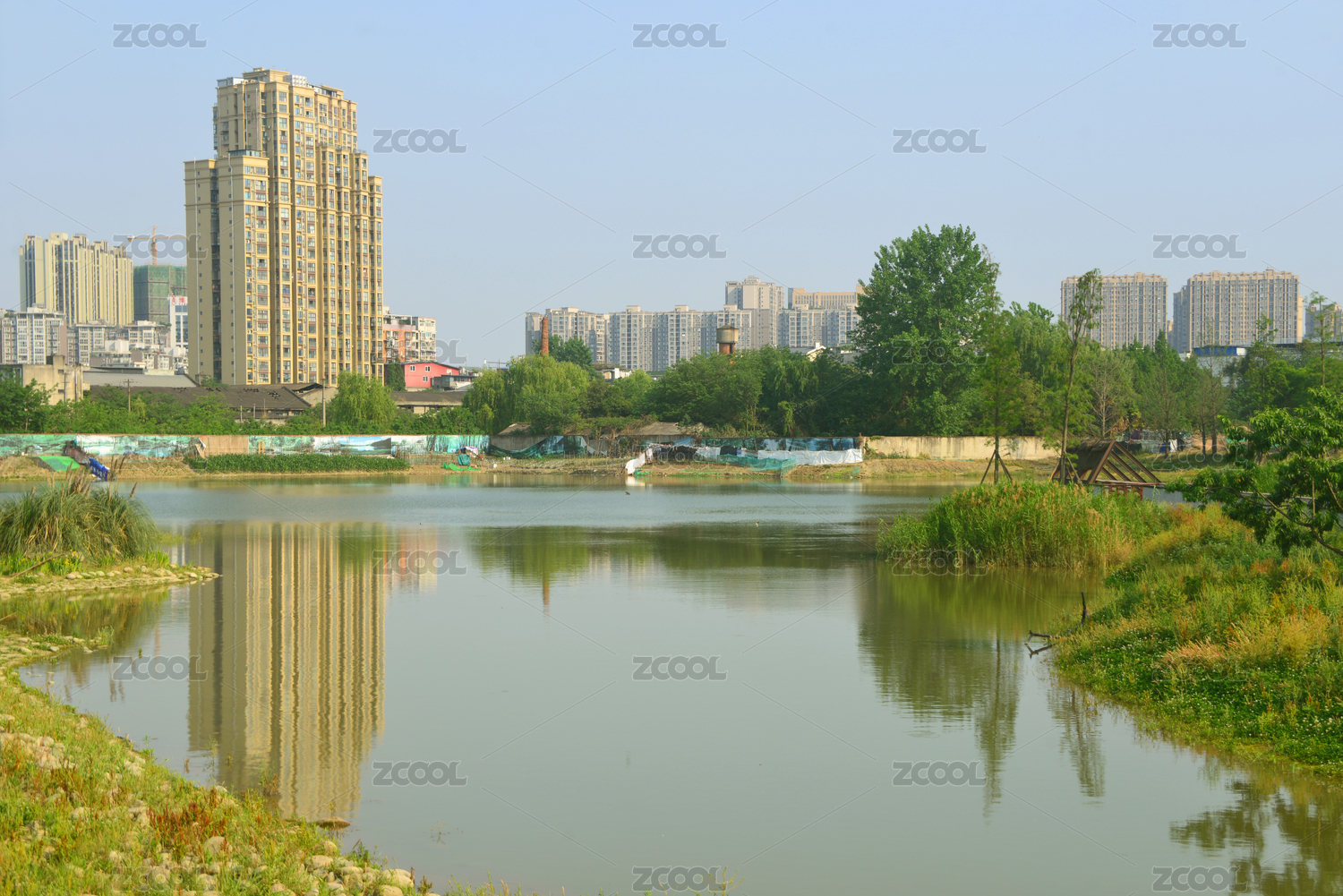湖南长沙洋湖湿地公园楼房高楼建筑