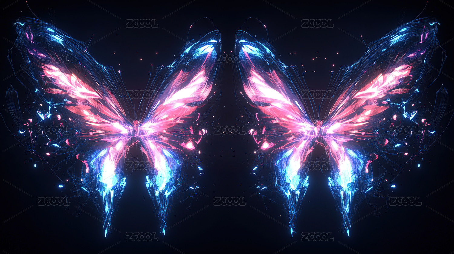 黑色背景的现代光效科技感3D彩色蝴蝶