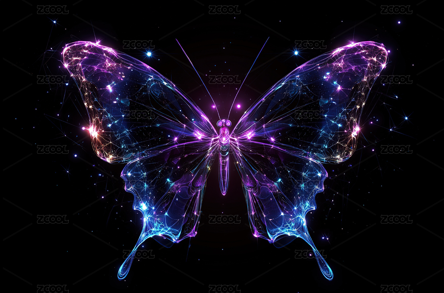 蓝紫色科技感抽象蝴蝶背景