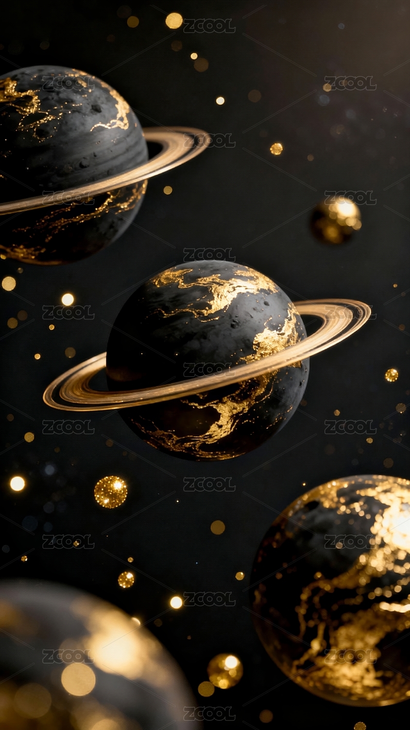 黑色背景黑金闪耀宇宙行星星环插画