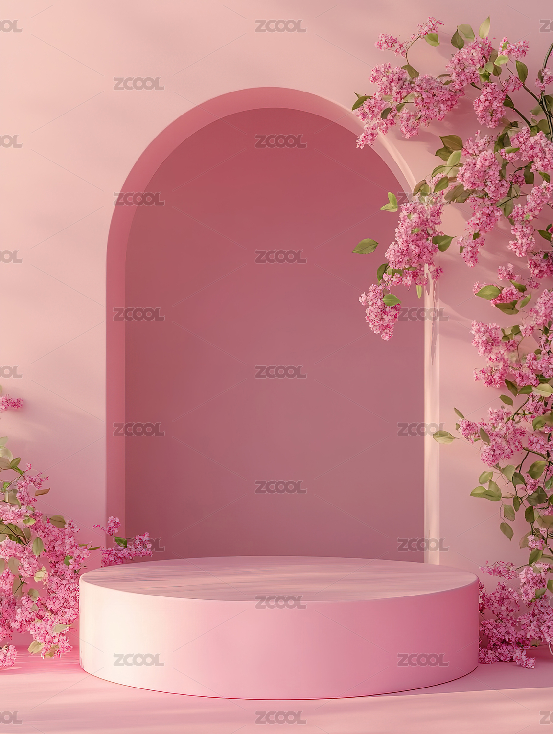 梦幻粉色花朵展台背景