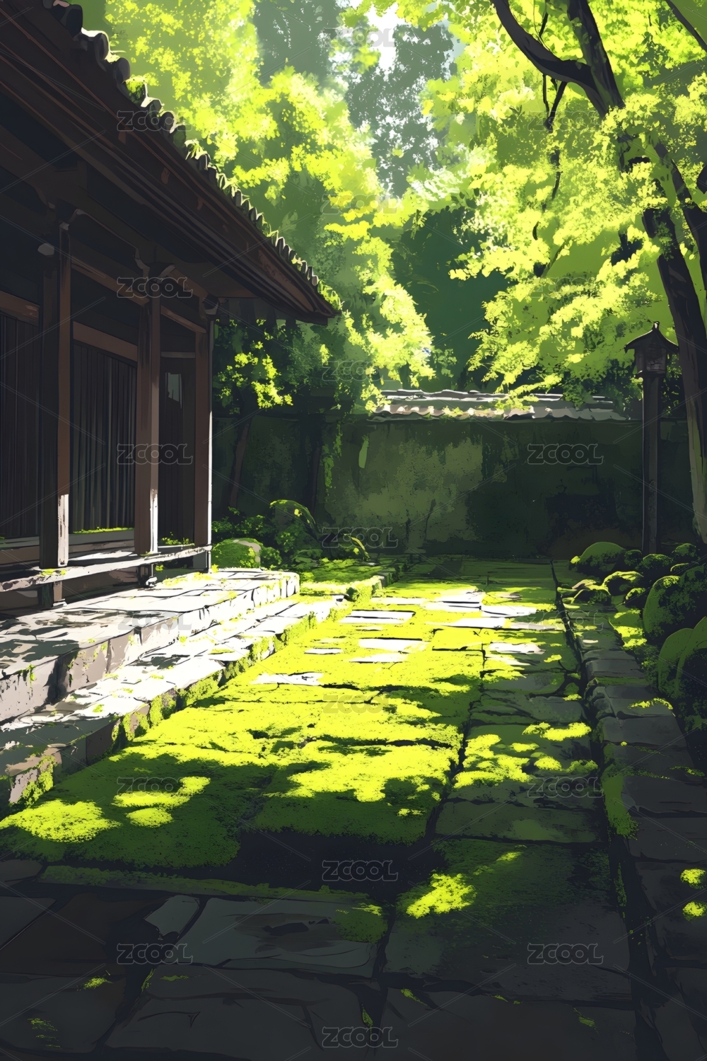 阳光下墙面缝隙的针状荆棘藤蔓插画背景场景