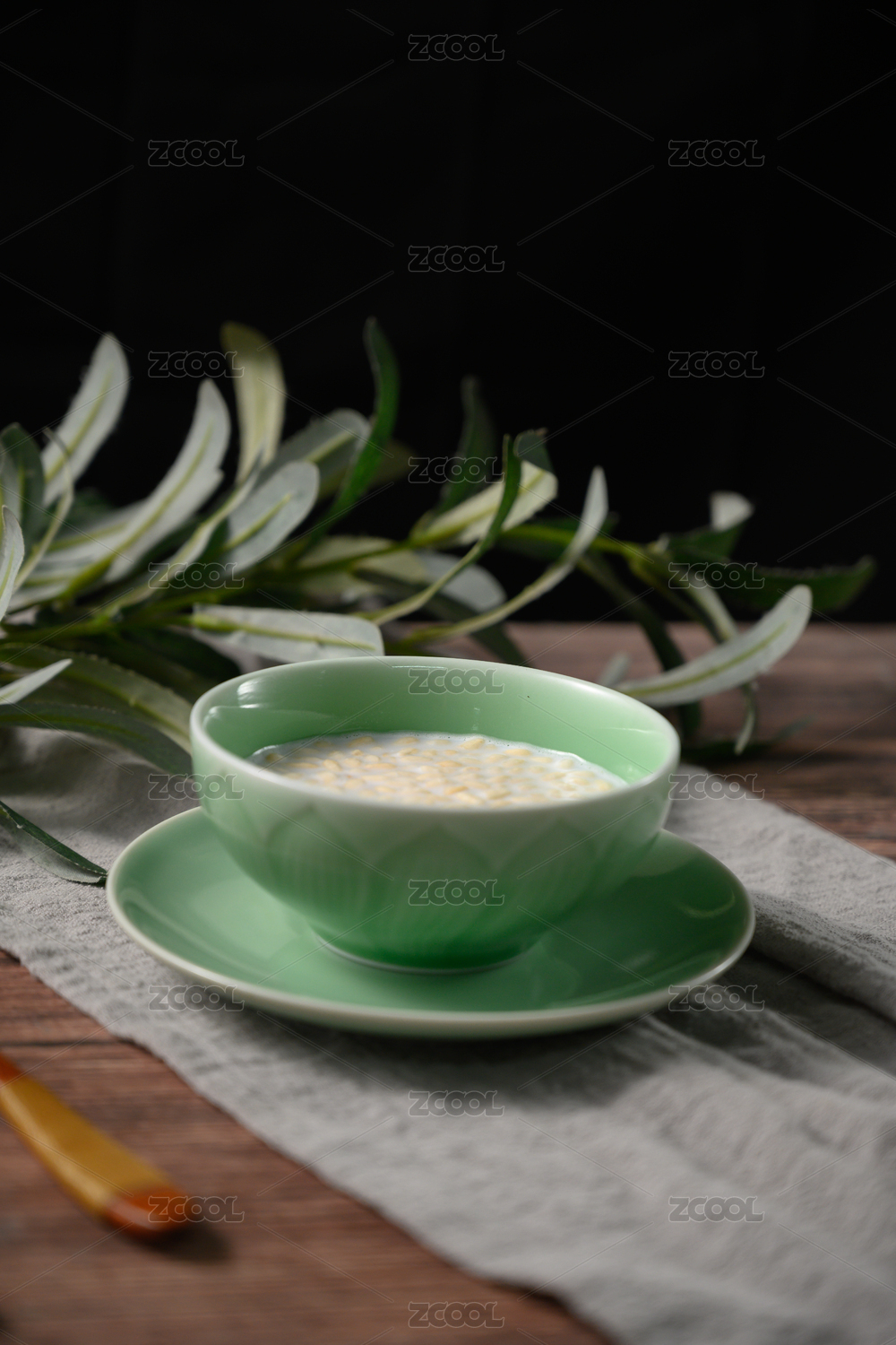 桌面上的盘子里的美味可口的水泡奇亚籽