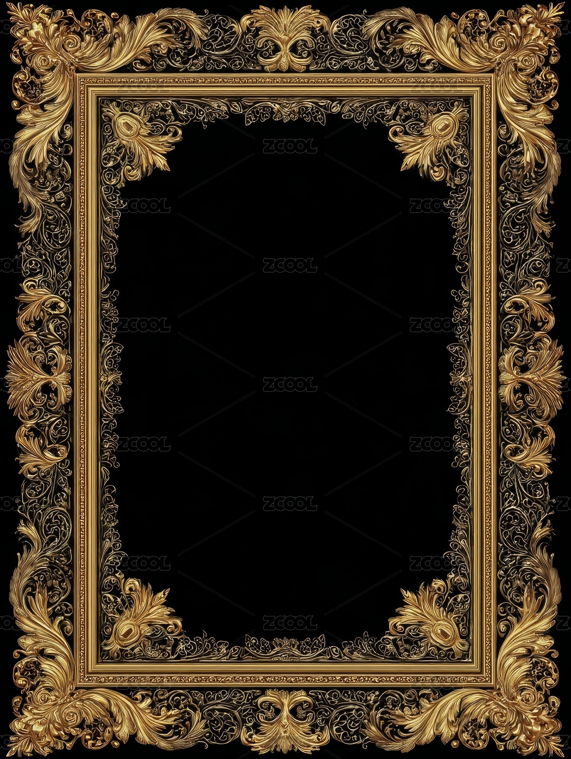 复古金色雕花相框装饰图案