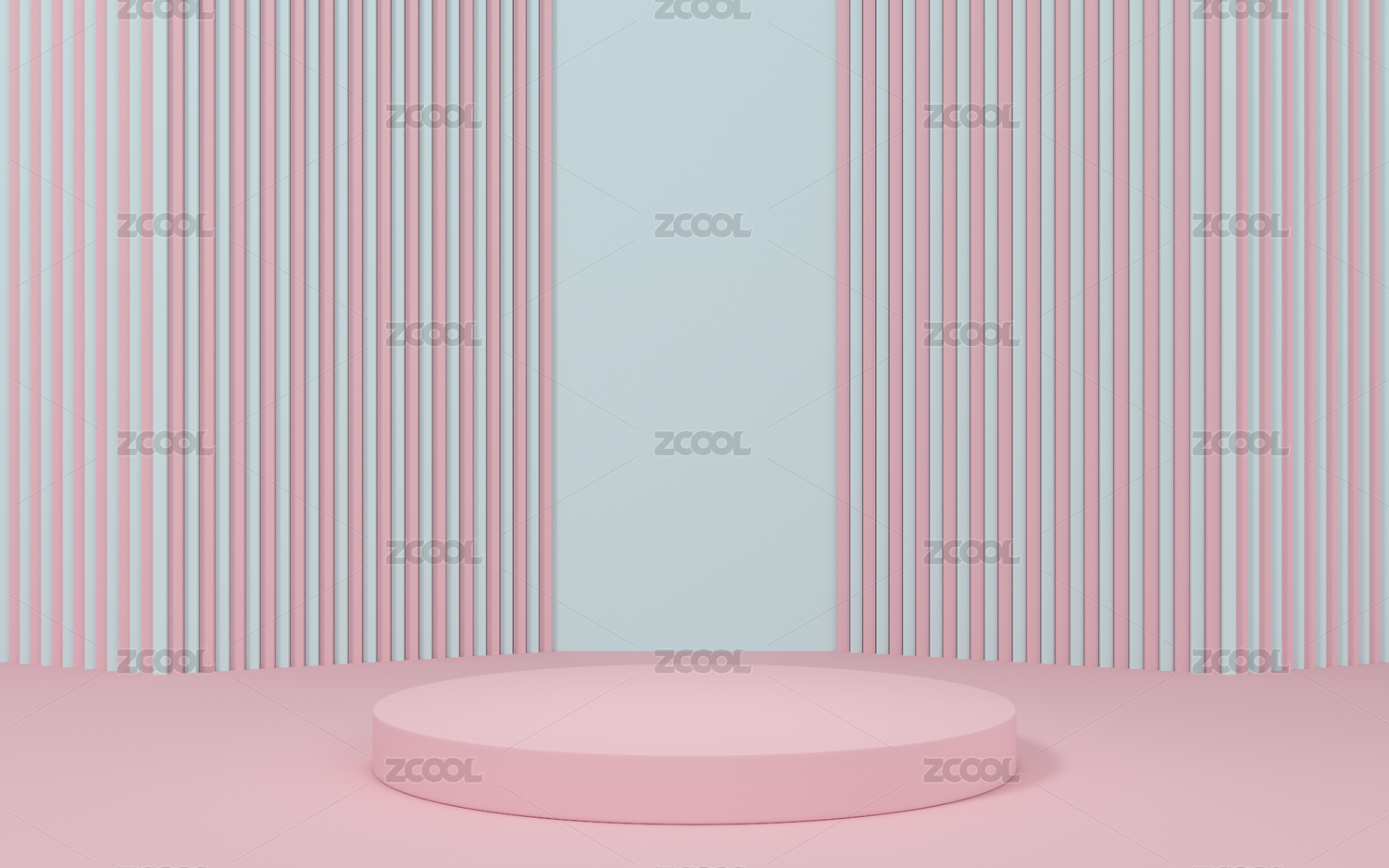 粉色圆形讲台与条纹背景的简约场景