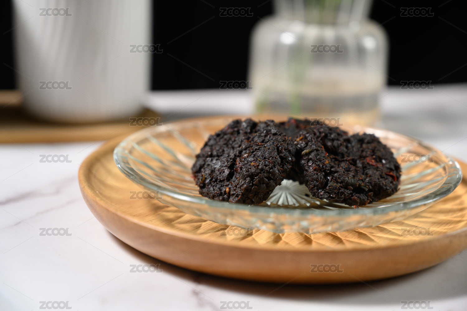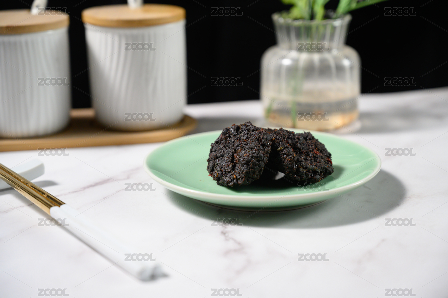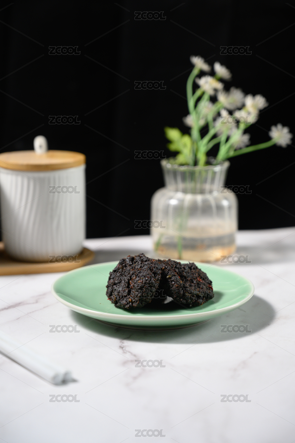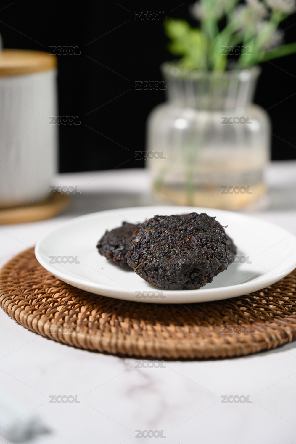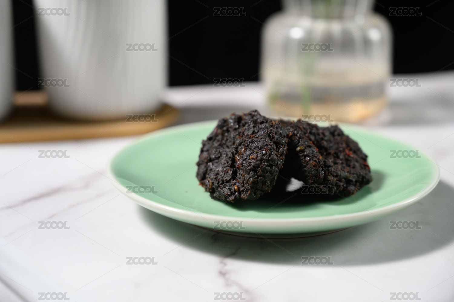 桌面上的盘子里的美味可口的豆豉饼