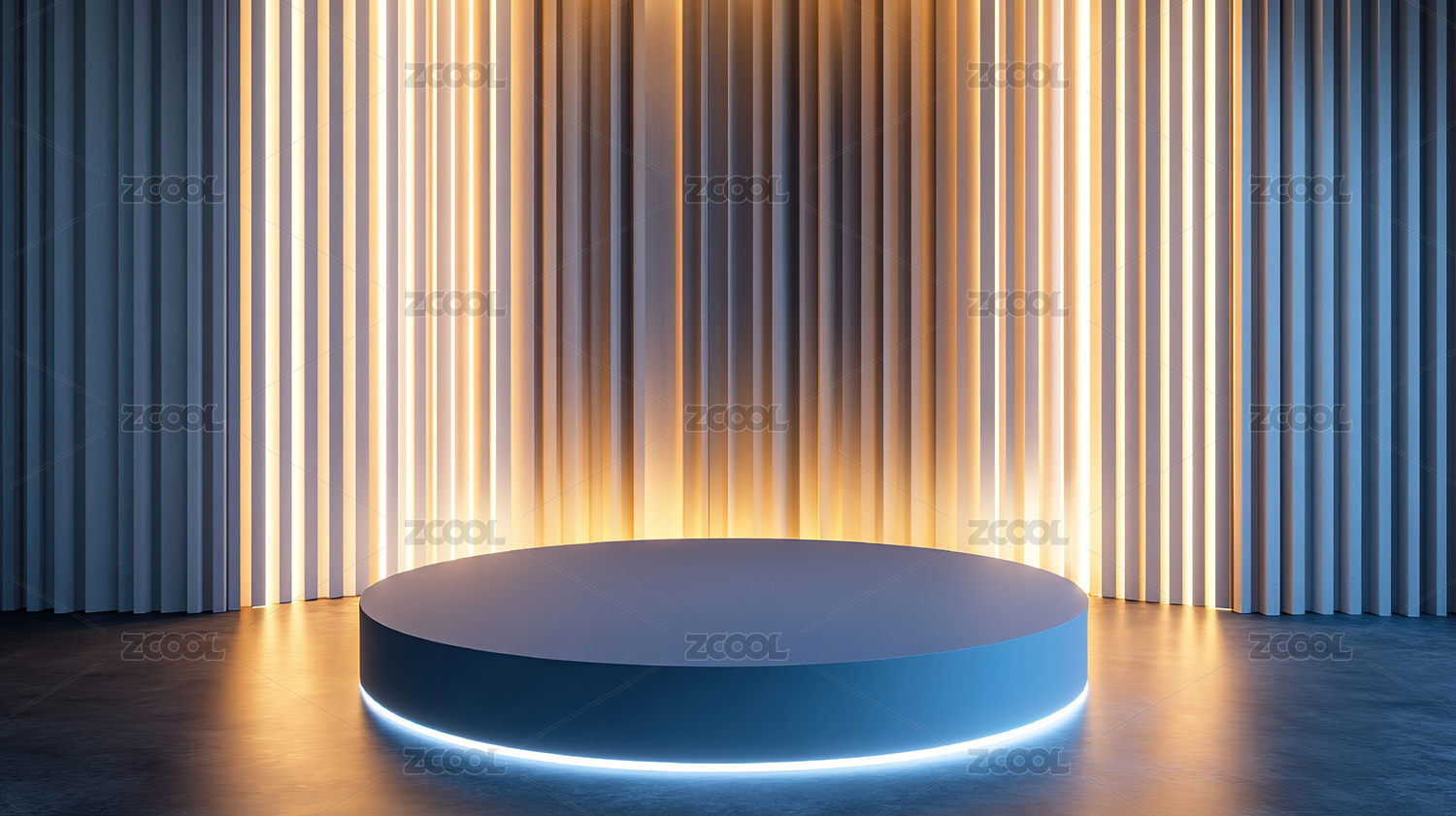 3D渲染科技风霓虹灯线条电商产品展台背景