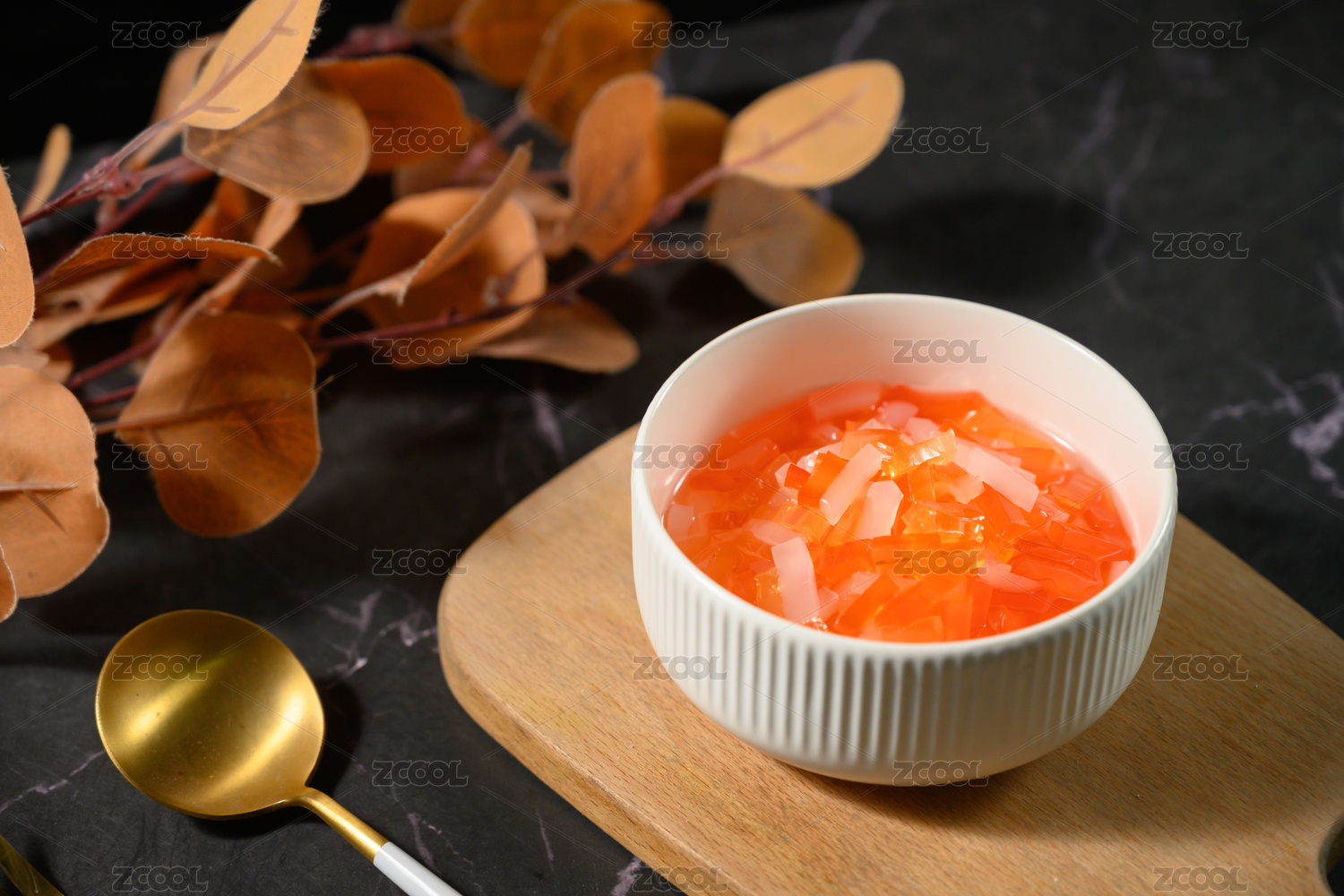 桌面上的碗里的泡发开的桃胶