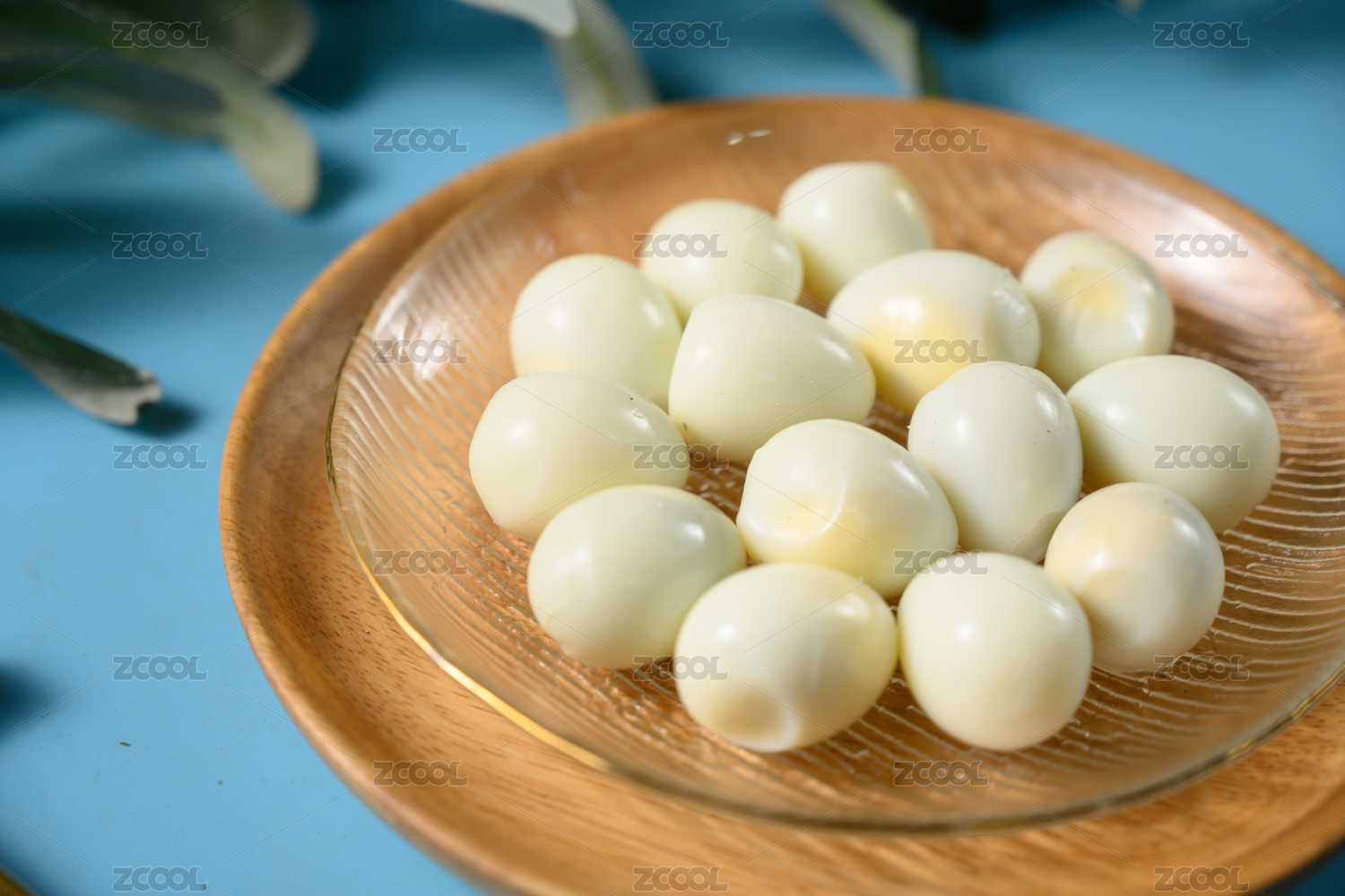 桌面上的盘子里的美味可口的水煮鹌鹑蛋