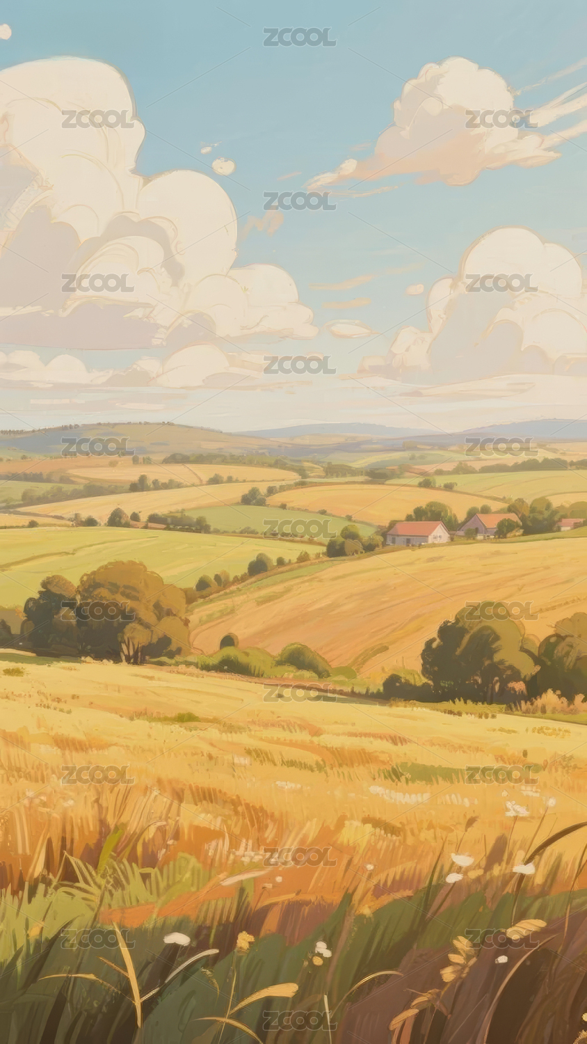 AIGC202404,牛,牧场,农业,乡村,农场,牲畜,草地,天空,田地
