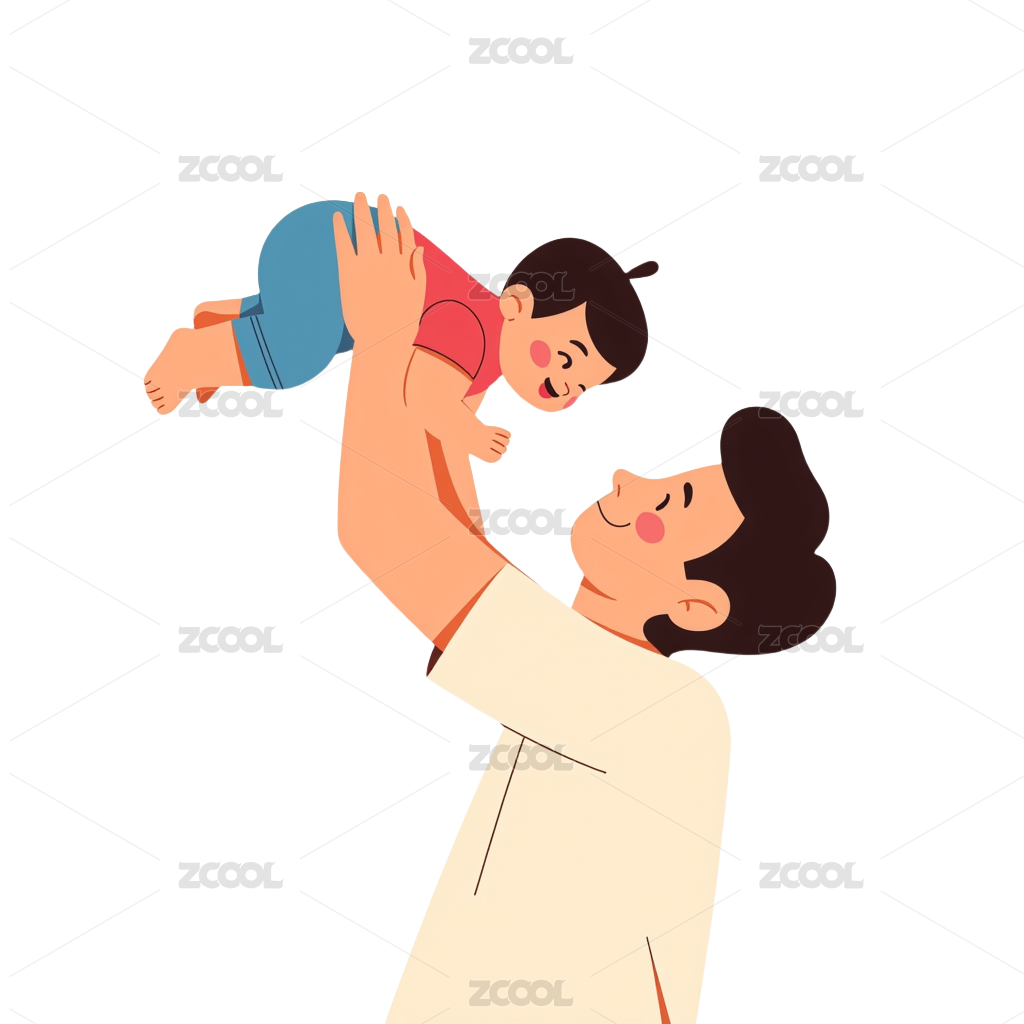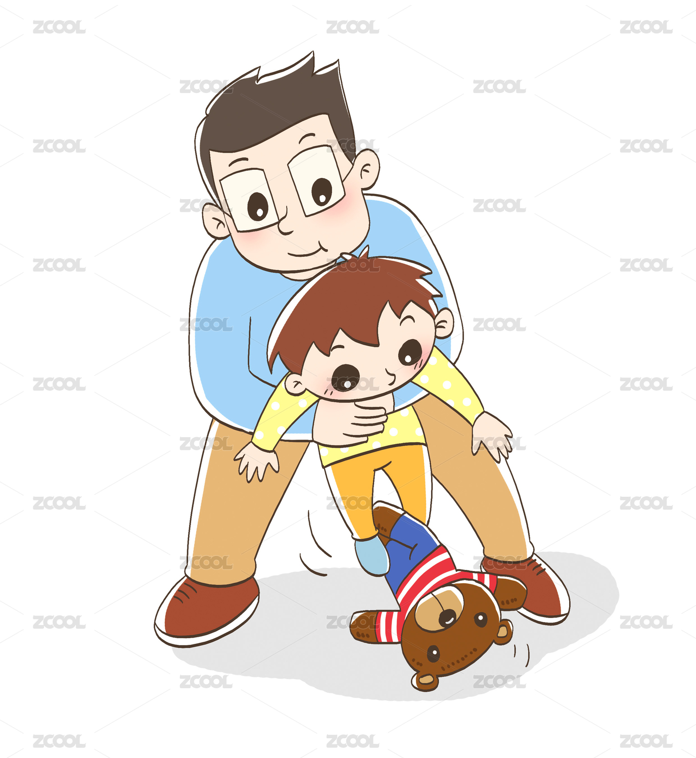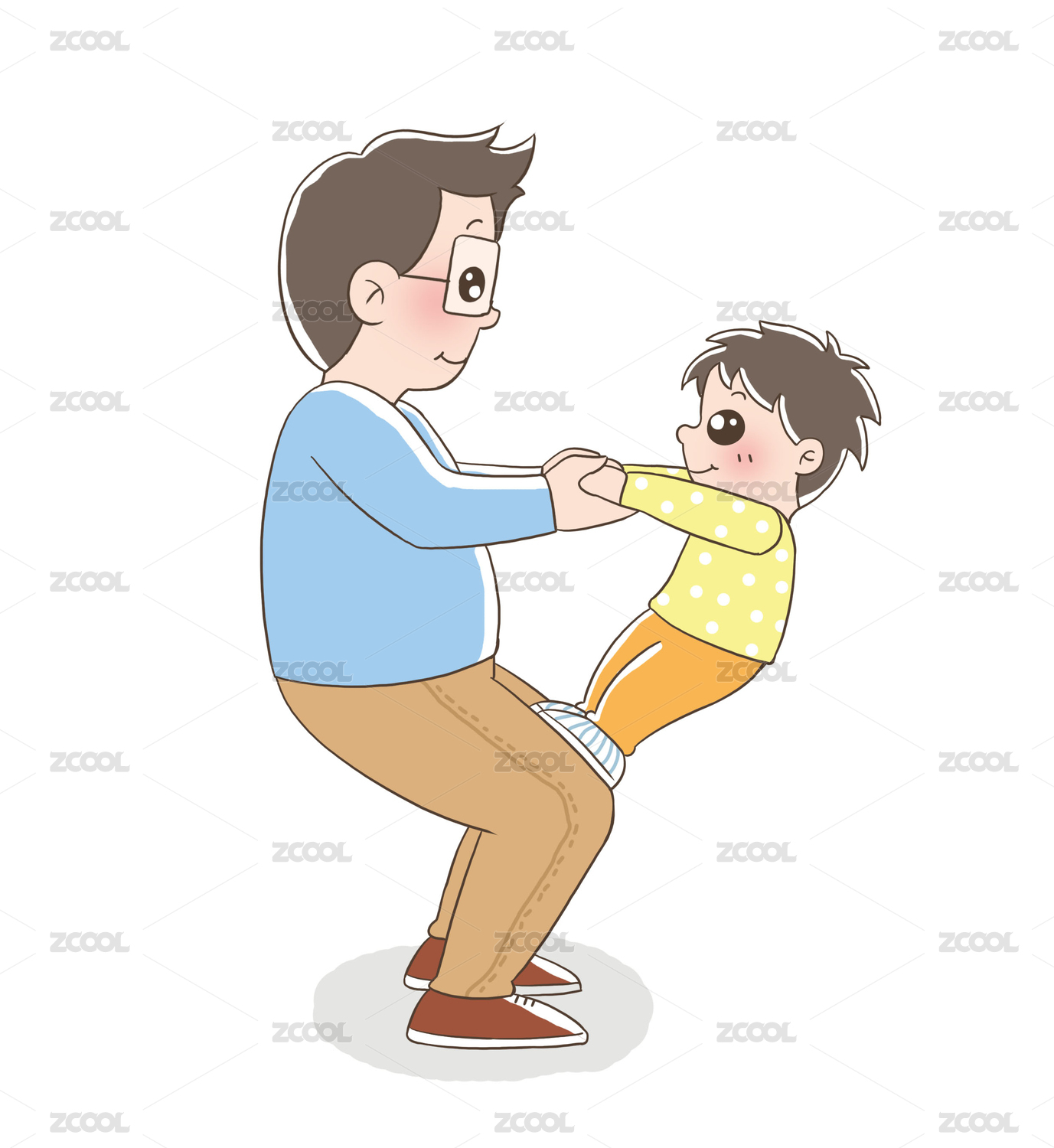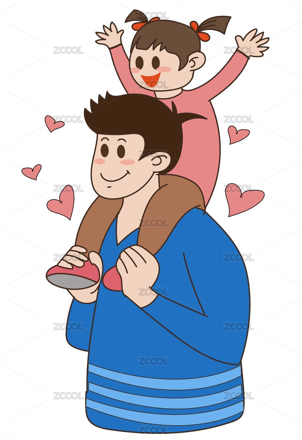矢量手绘卡通父亲节父子亲子爸爸女儿素材
