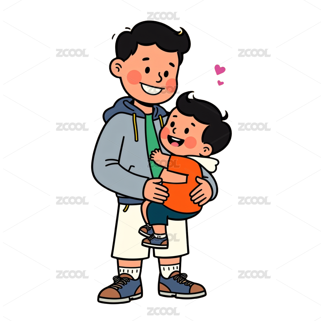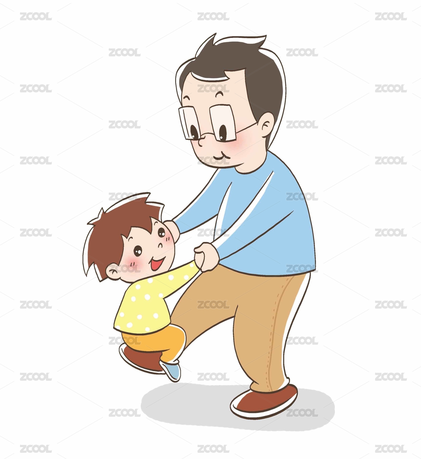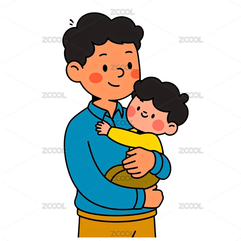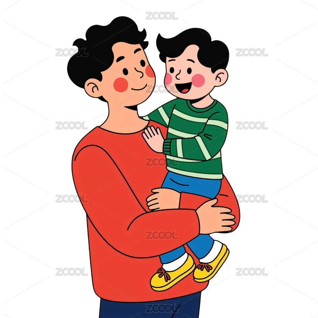 矢量手绘卡通父亲节父子亲子爸爸女儿素材