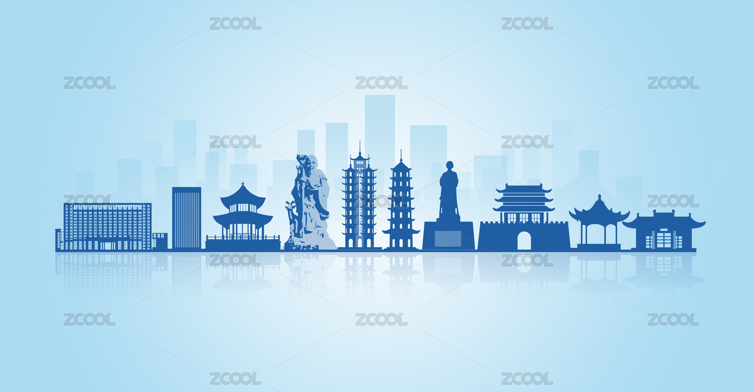 中国河南省濮阳市地标建筑剪影天际线背景图
