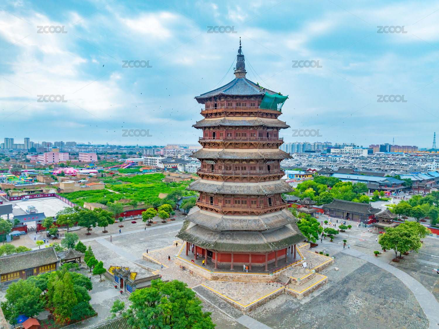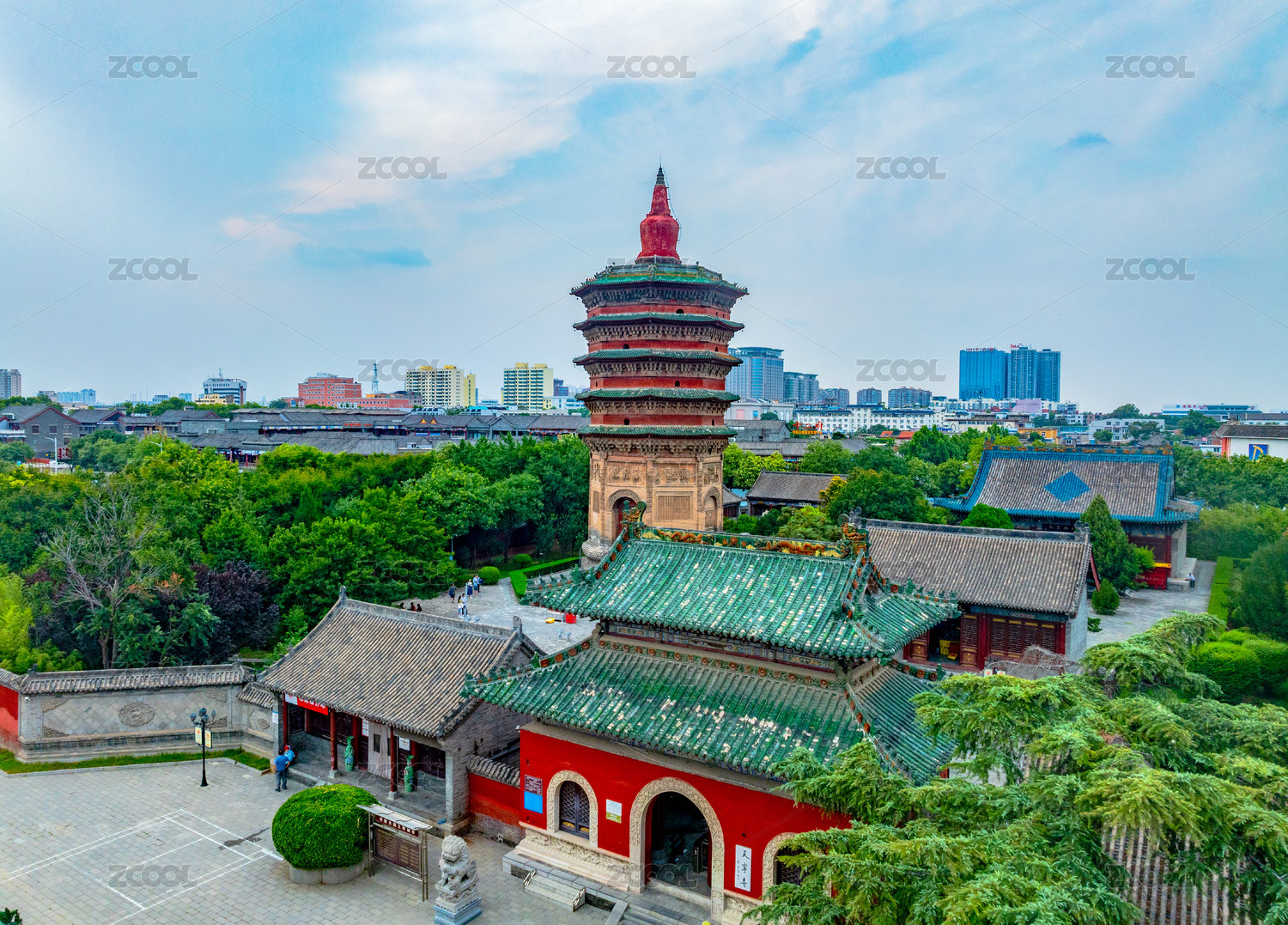 航拍河北省石家庄市正定县开元寺和须弥寺