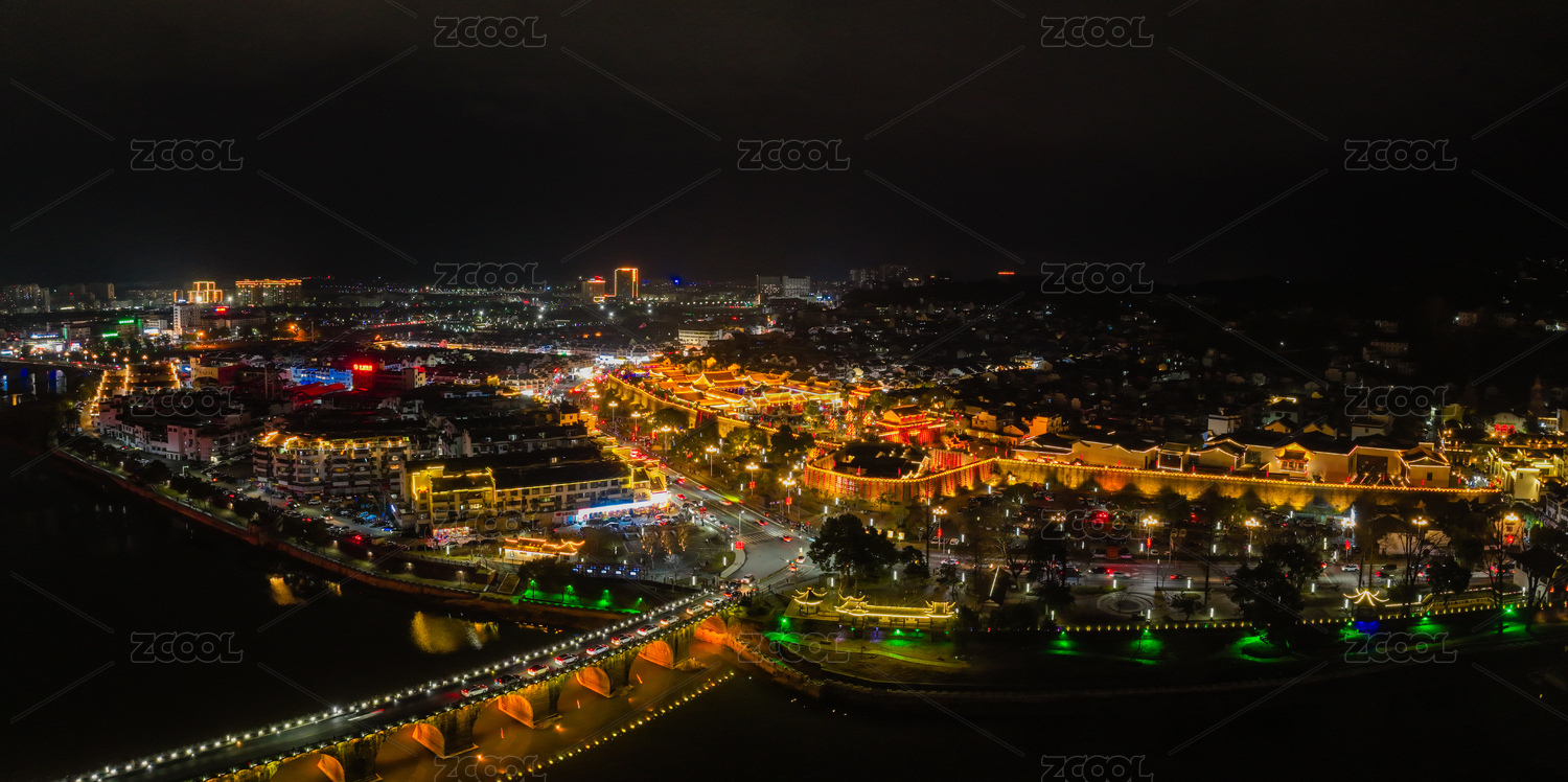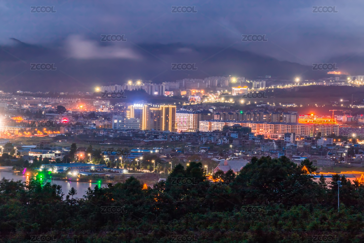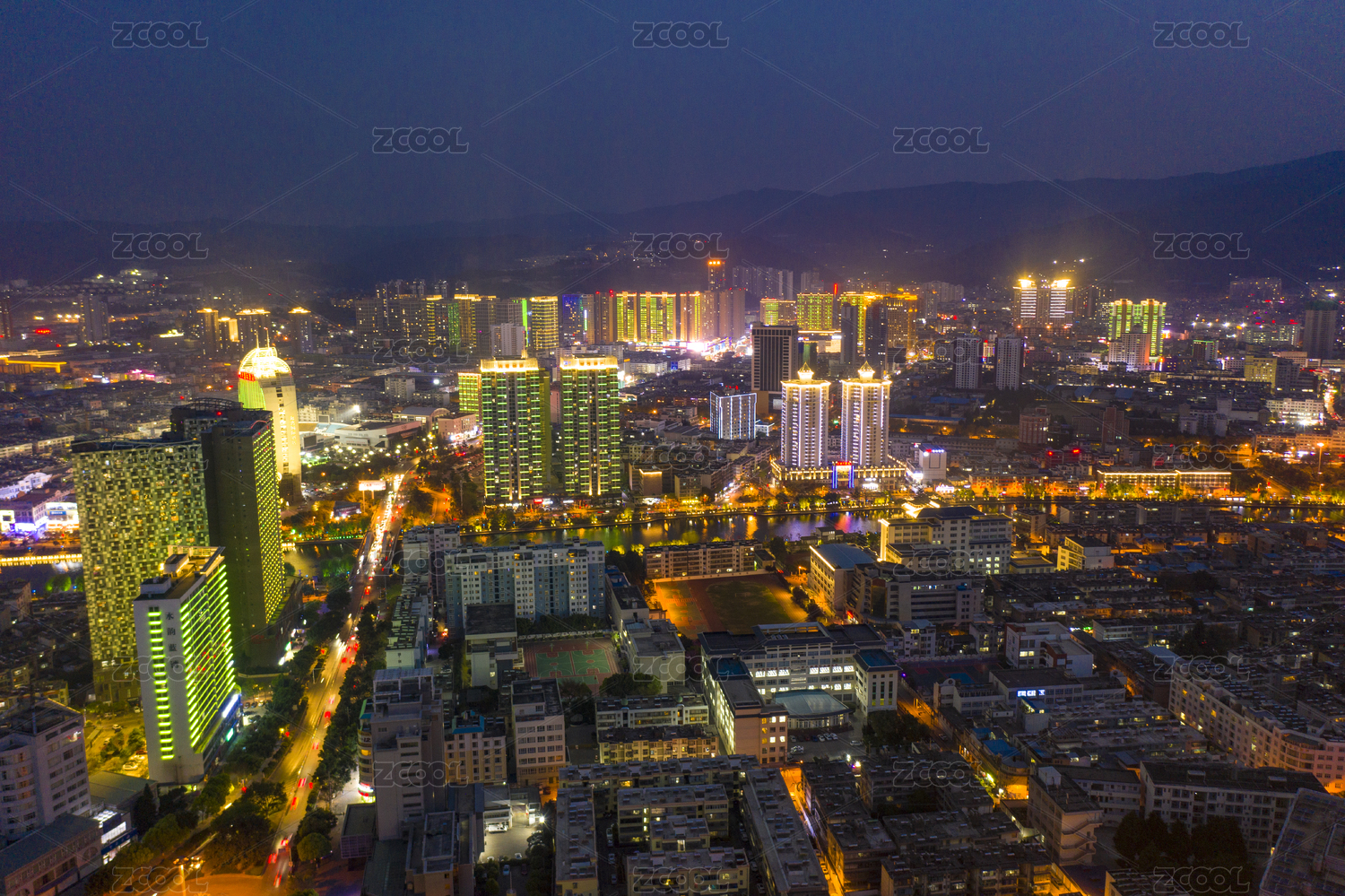 云南普洱市澜沧县城市天际线夜景航拍风光