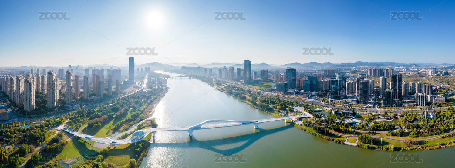 绍兴,上虞,曹娥江,人行桥,江滨,城市,航拍视角,河流,桥梁,城市风光