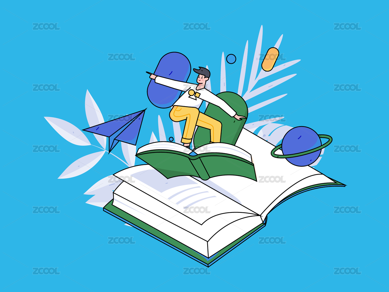 卡通手绘读书教育学习开学季插画