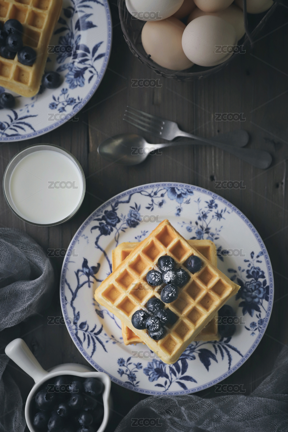 华夫饼,蜂蜜,蓝莓,烘焙,美食,美食摄影,深色,厨艺,厨房,甜点