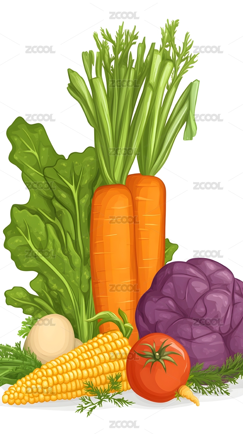 扁平插画风格 胡萝卜花椰菜洋葱番茄黄瓜