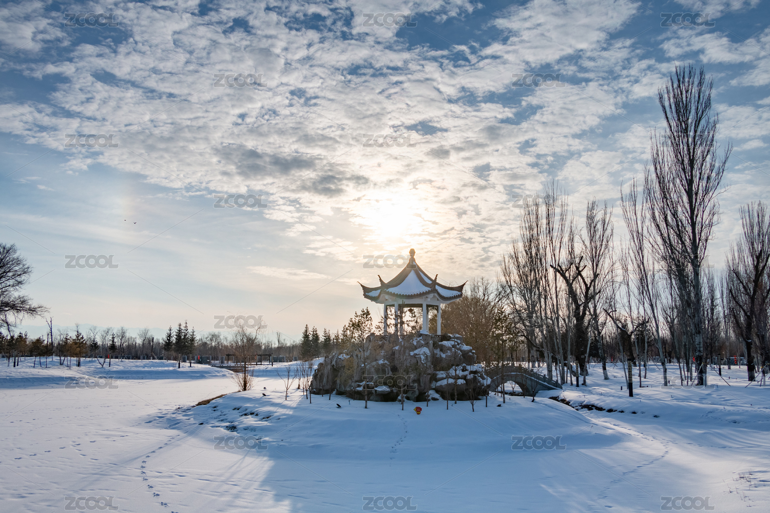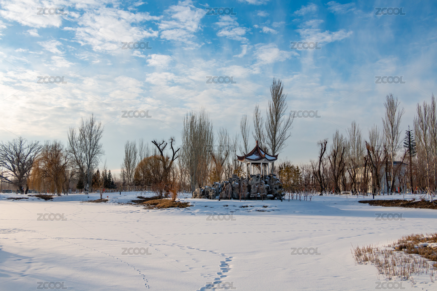 雪后公园披上银装的树木