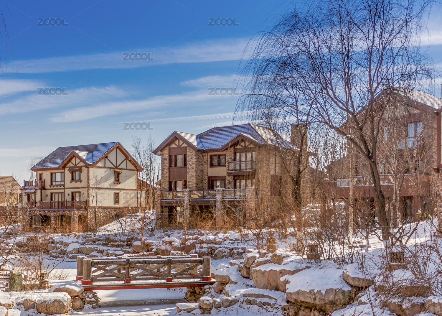 中国河北张家口库伦淖景区木屋别墅建筑群