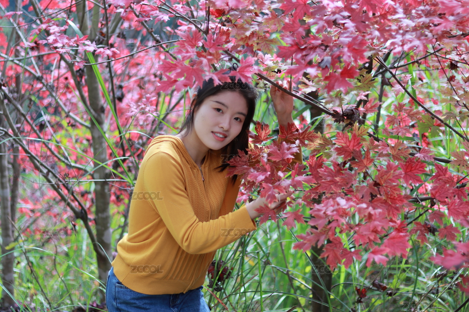 年轻的女孩在江西省赣州市安远县的树林游玩