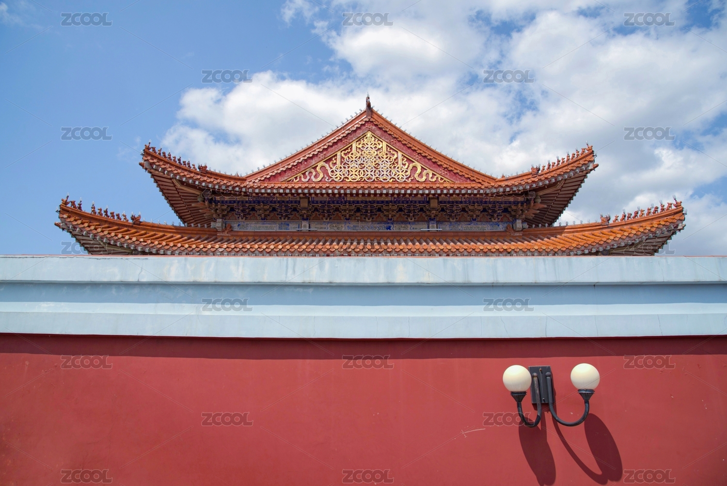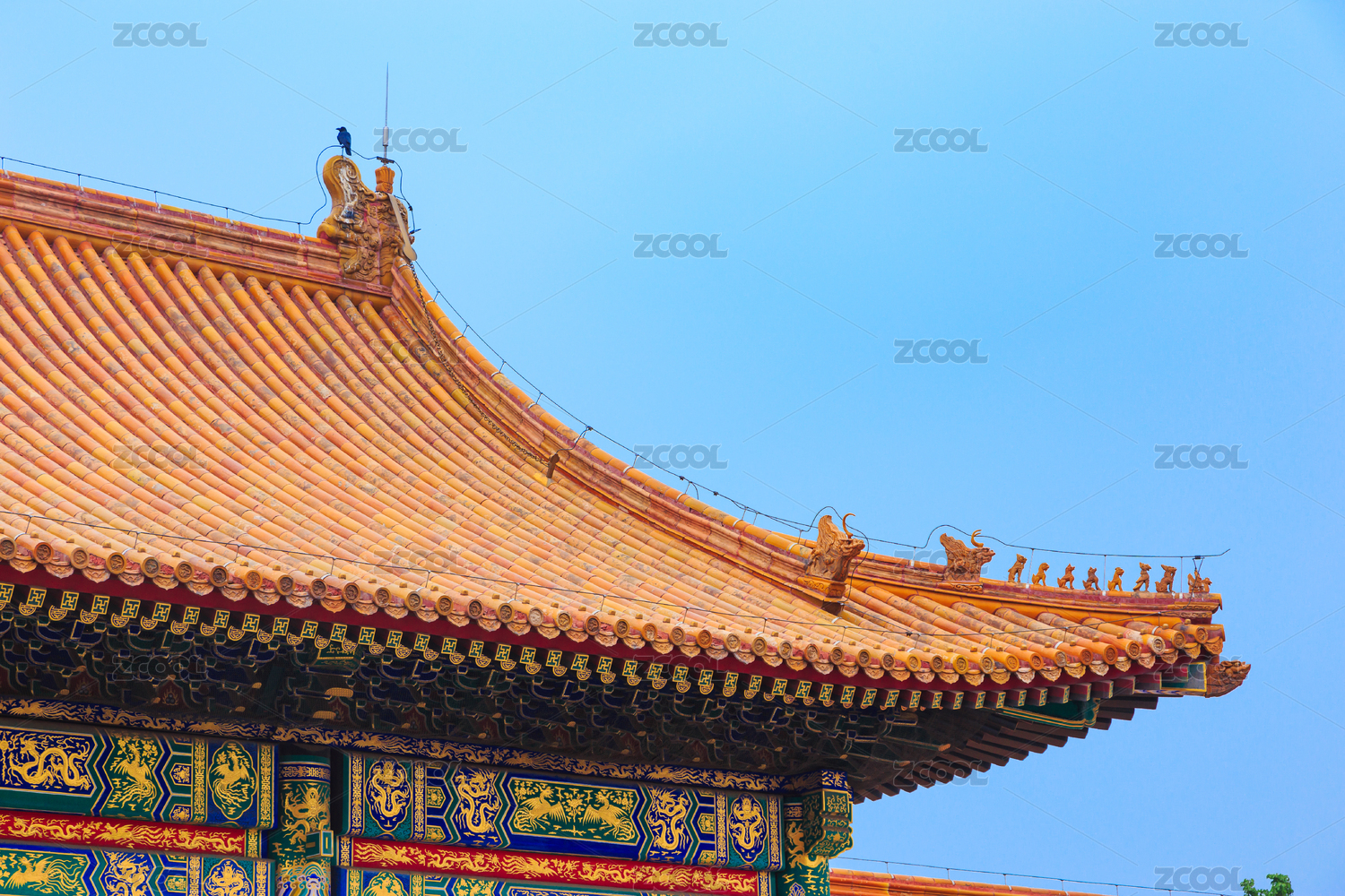 蓝天下的中国北京故宫博物馆的古宫殿建筑