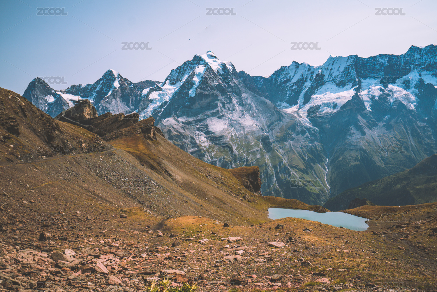雄伟的西欧瑞士阿尔卑斯山脉少女峰雪山