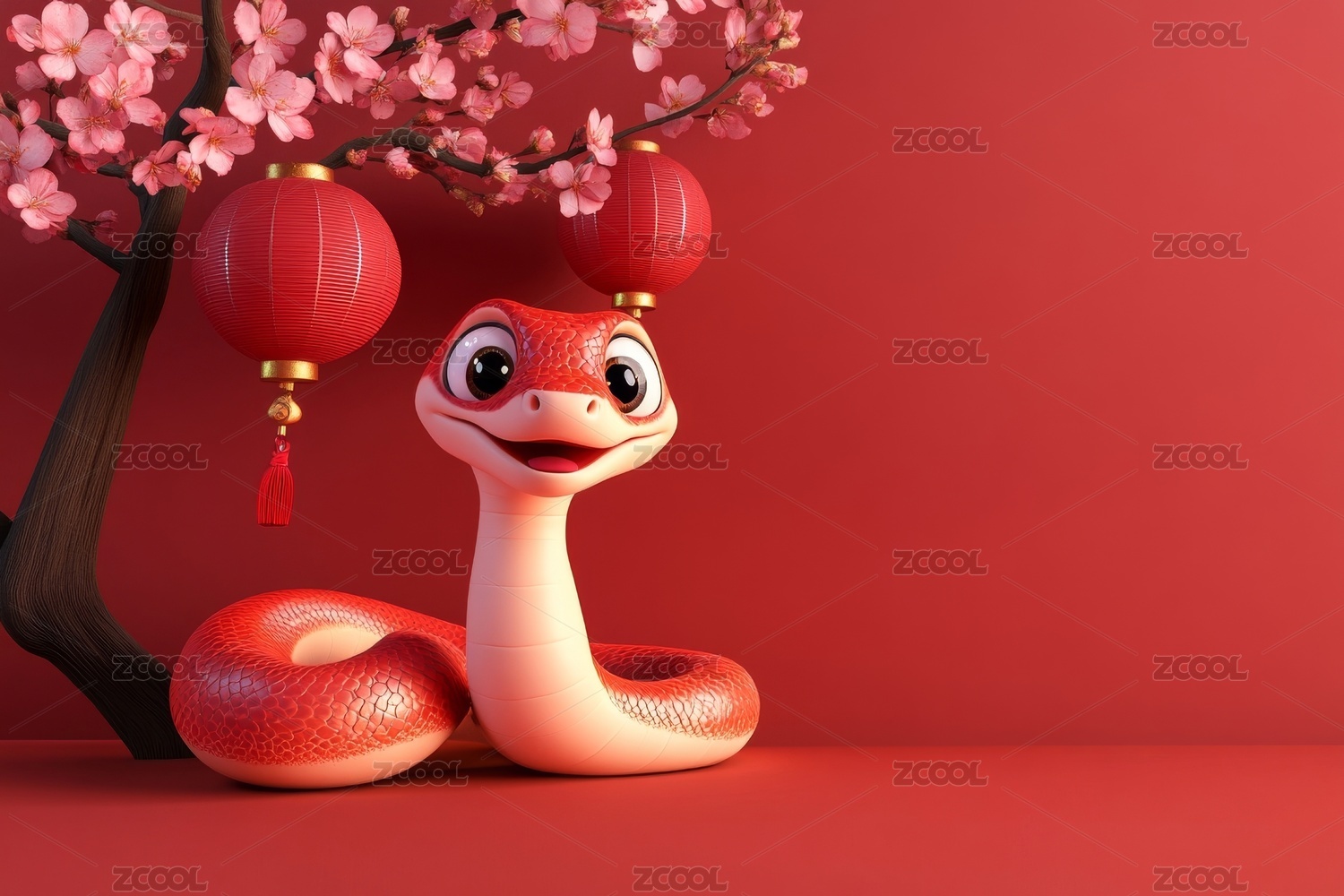 蛇,蛇年,生肖,花,花瓣,插画,3d,卡通,可爱,孤立