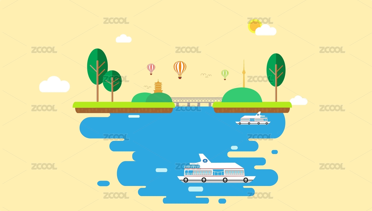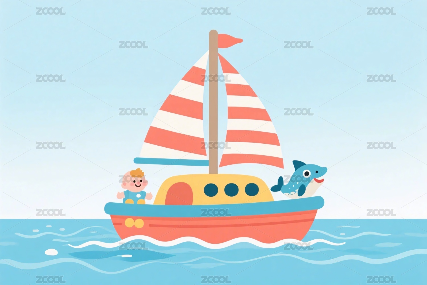 卡通帆船插画