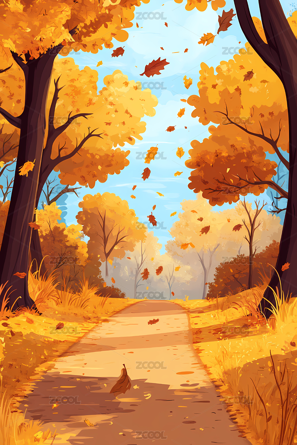 小森林,秋色,黄叶,小路,栏杆,AIGC202402,秋天,秋景,金黄,金秋