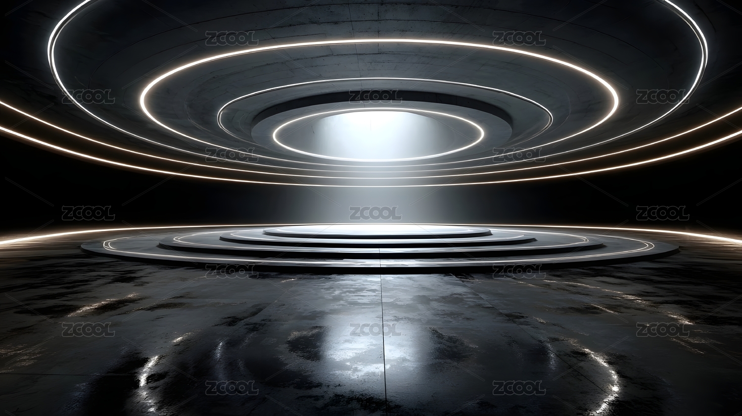 未来科技空间,发光裂缝与圆形平台