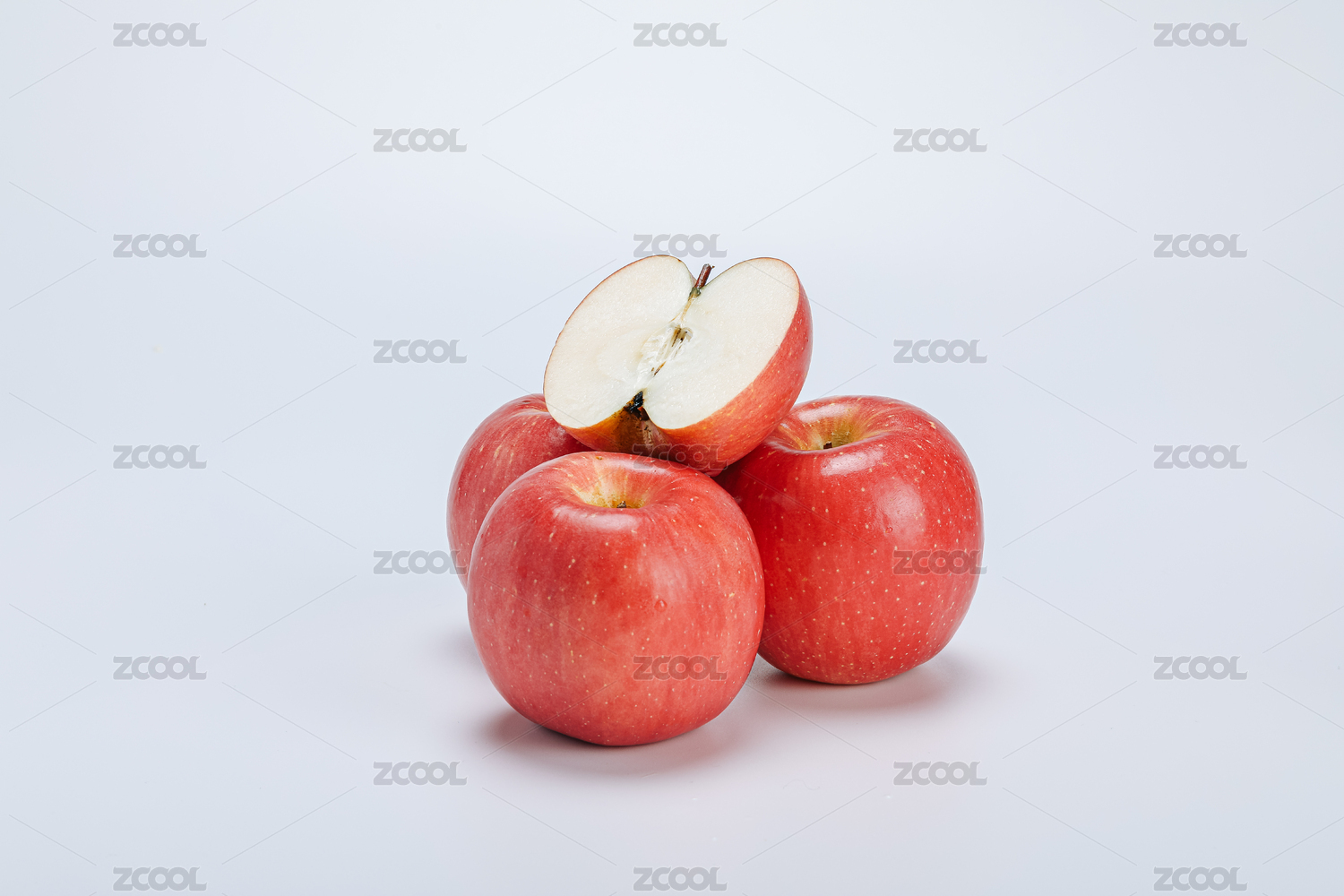 棚拍白底静物水果新鲜水灵的苹果嘎啦果