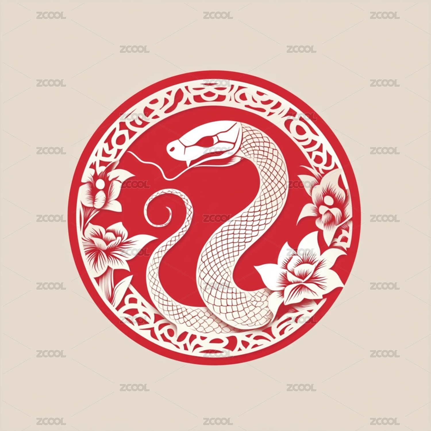 蛇年主题插画艺术剪纸图案logo徽章标志