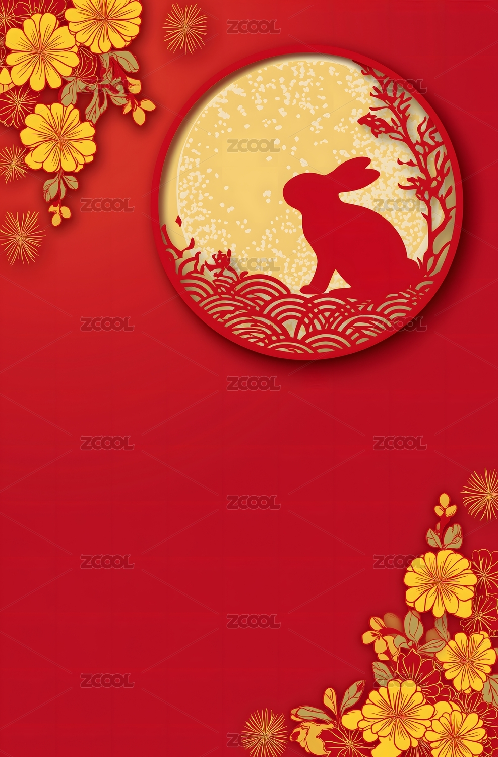 新年剪纸兔子背景