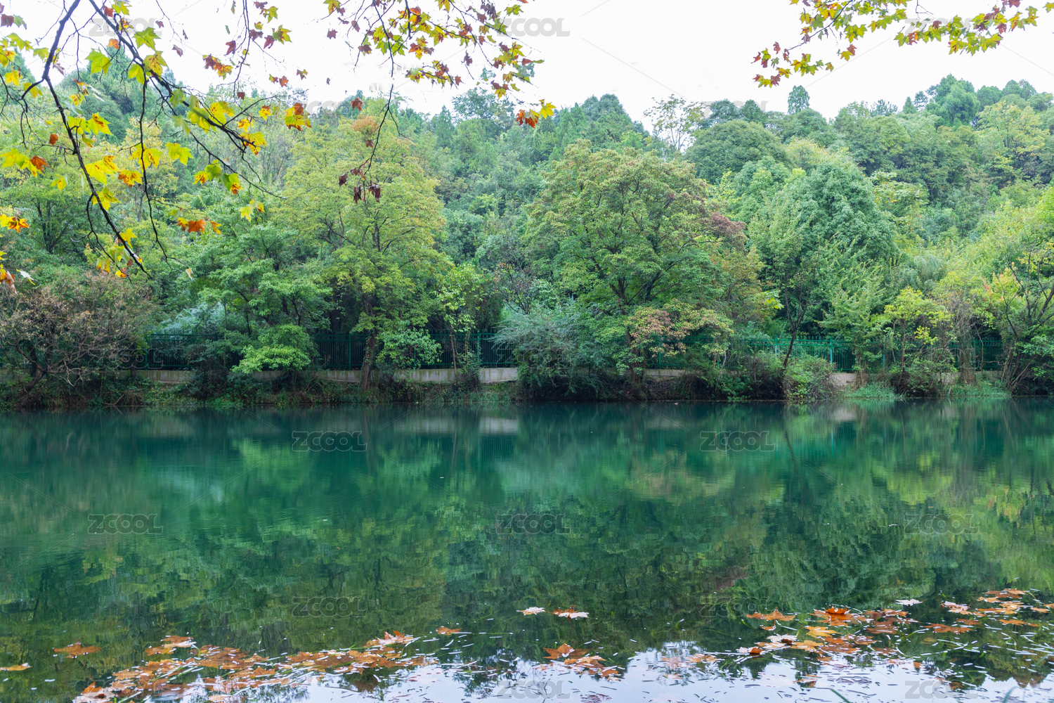 九寨沟风景区老虎海秋季彩林山水自然风光