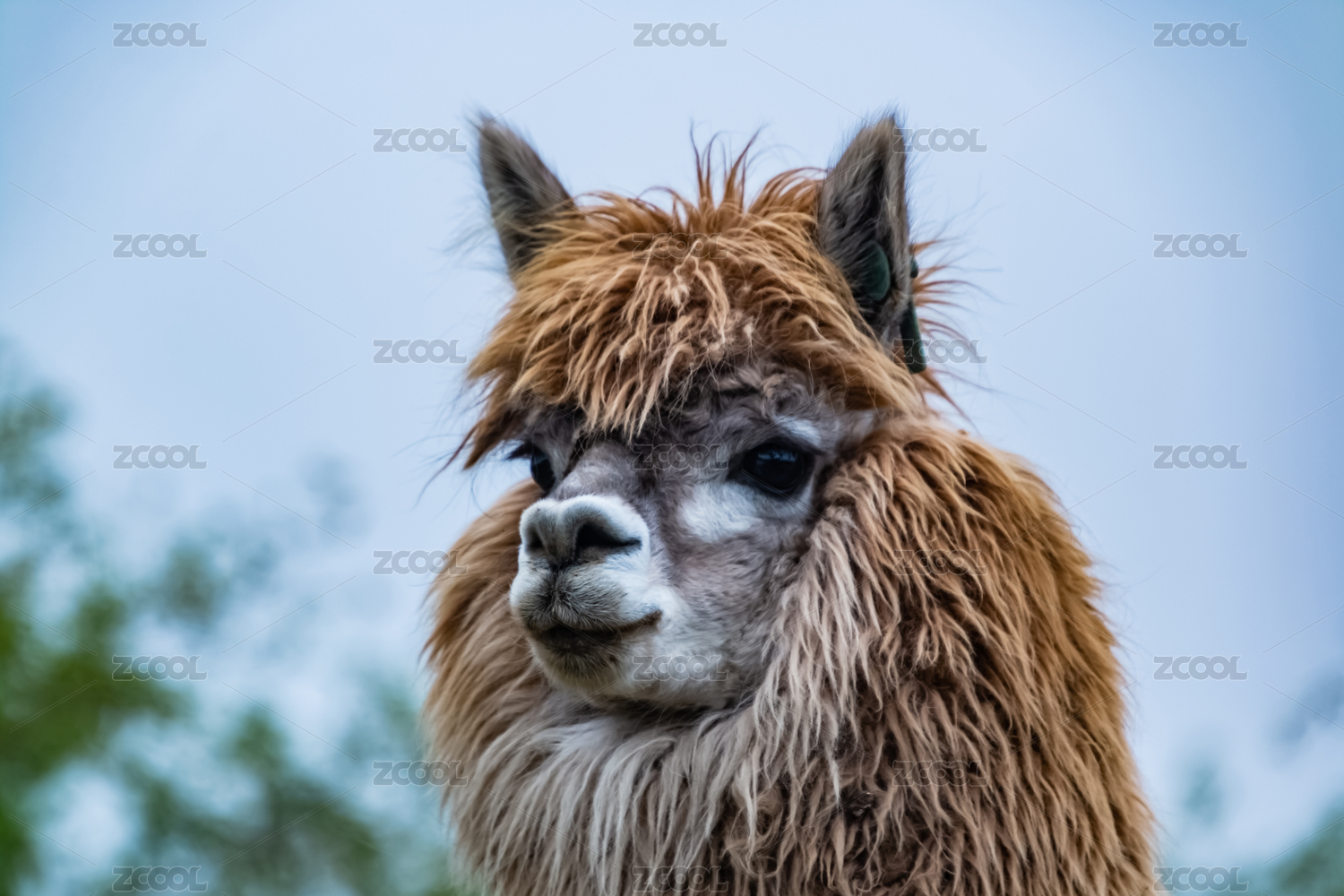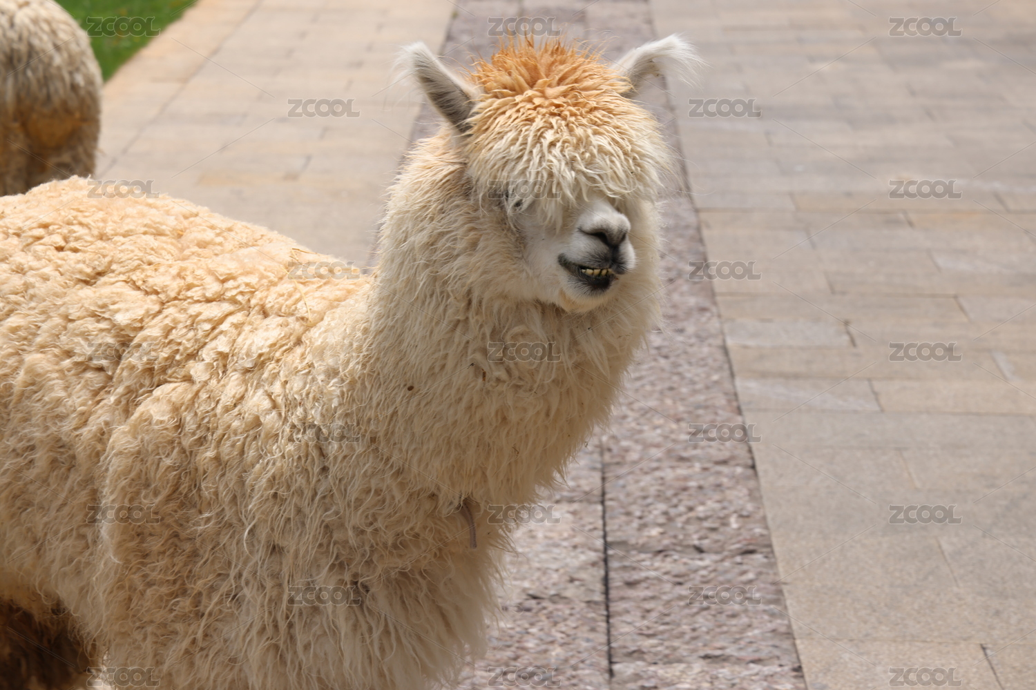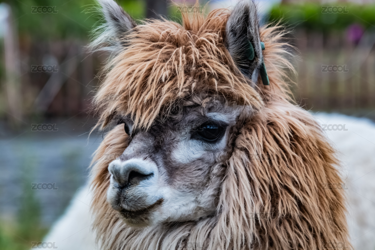 乡村生态园饲养野生脊索动物门灰色雄性羊驼